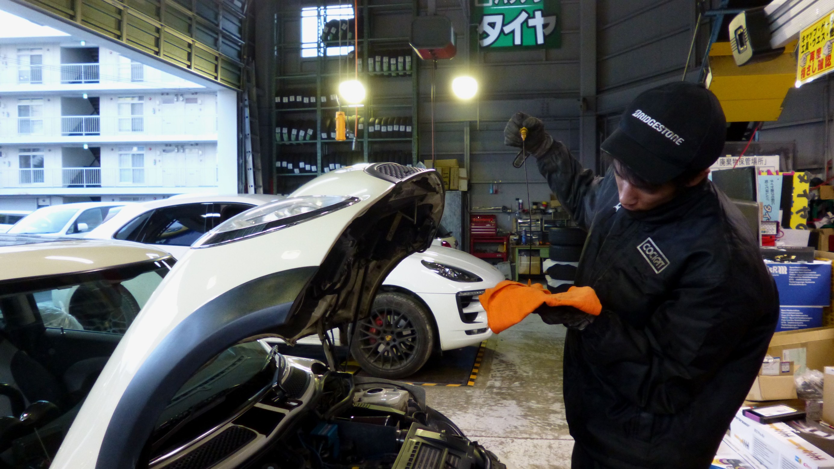 オイルレベルゲージで油量を確認し