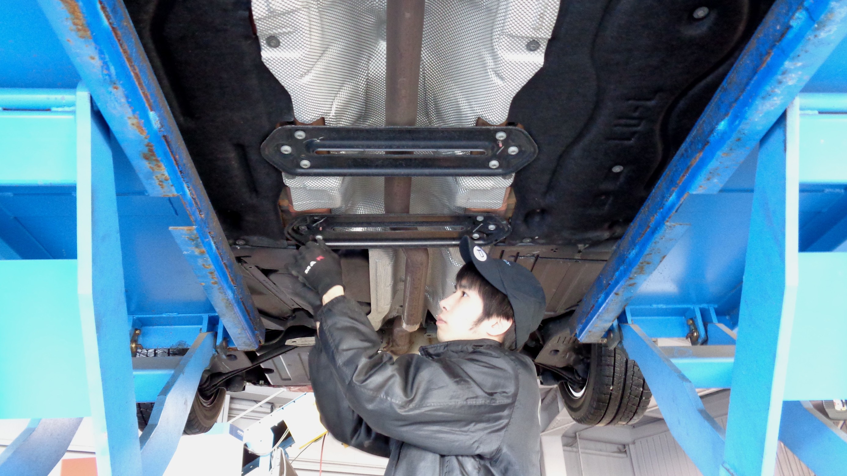 まずは 純正の補強プレートを外してから・・・