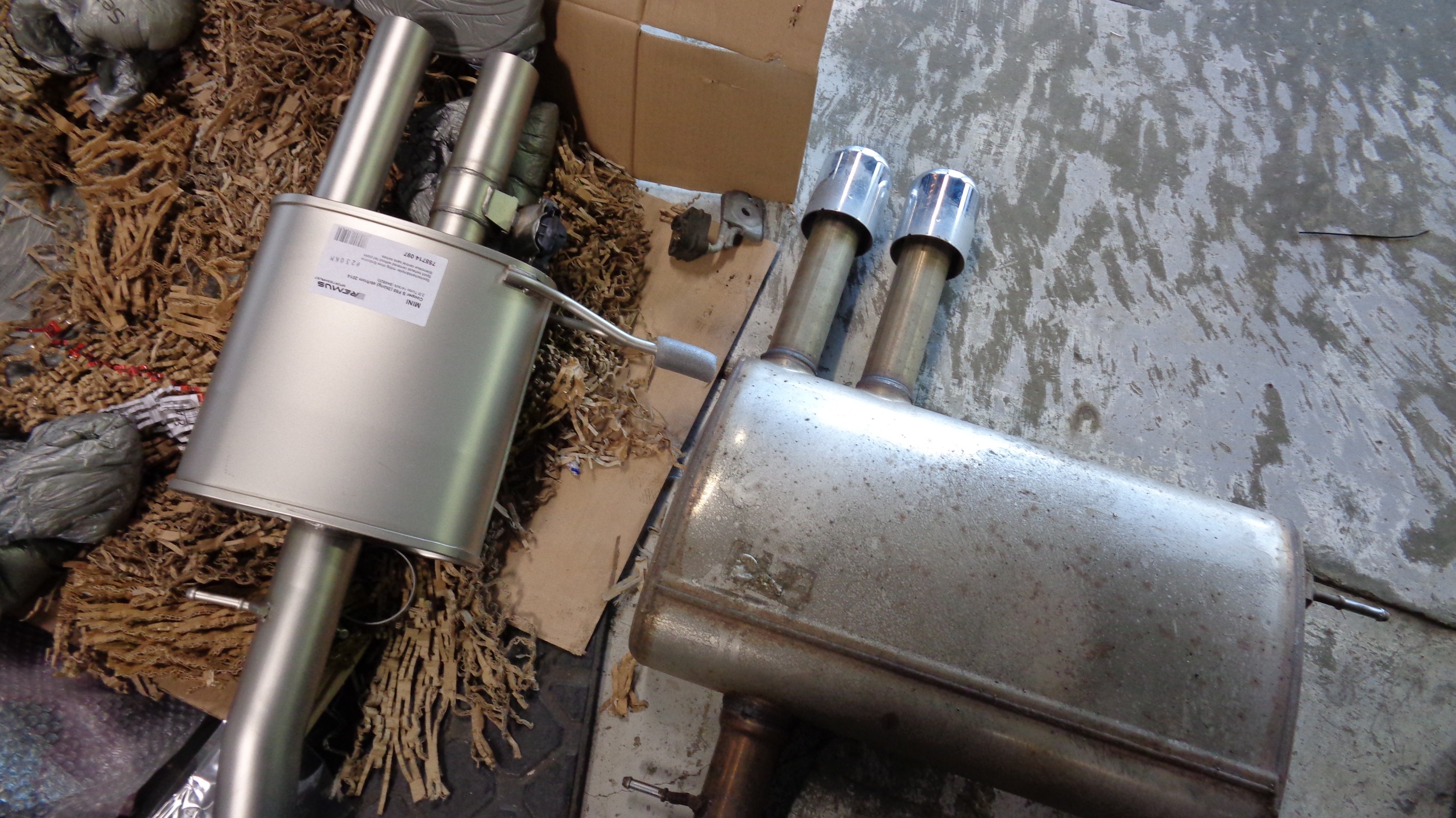 外した純正のマフラーと