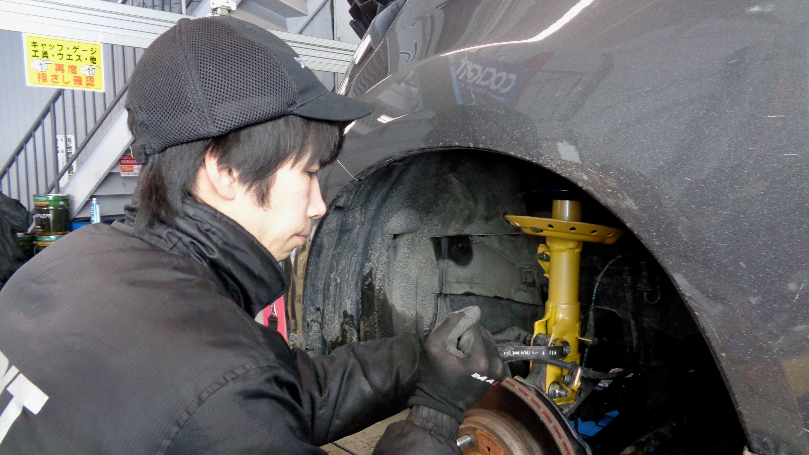 サスペンション交換とアライメント作業を紹介します。