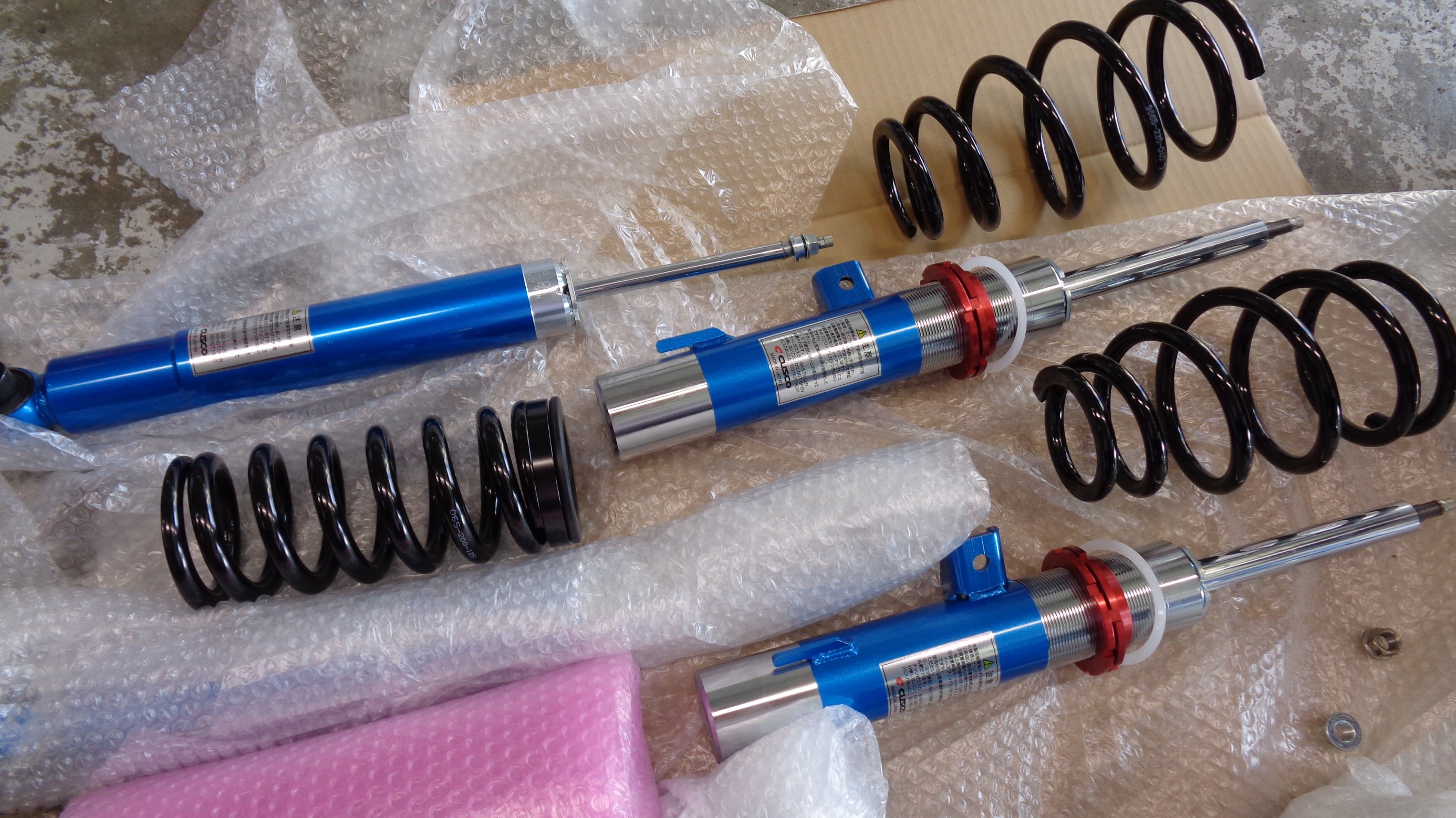 リア用 ショックアブソーバーを並べて記念撮影。