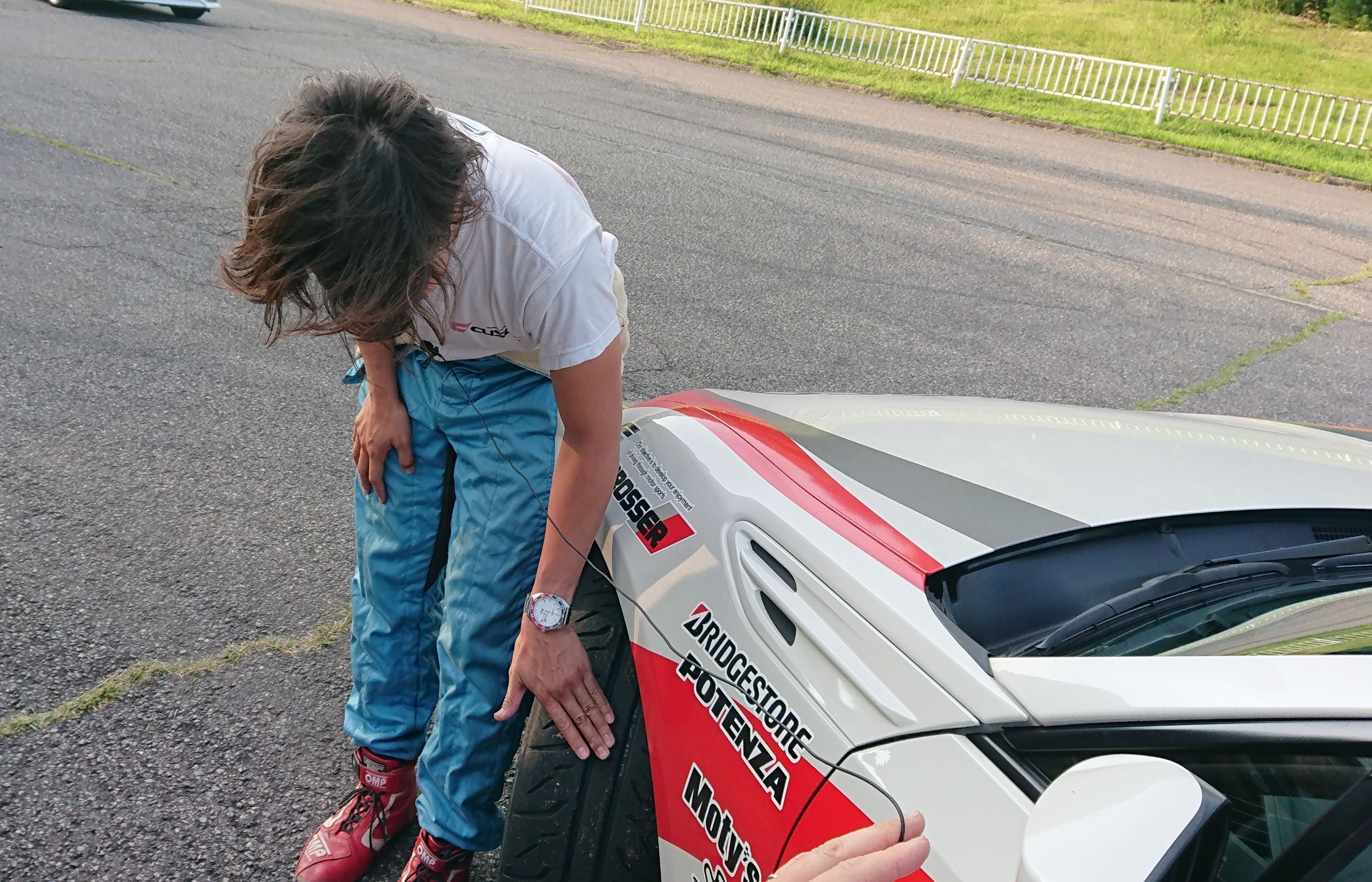 プロドライバーの方たちから説明を受けています。