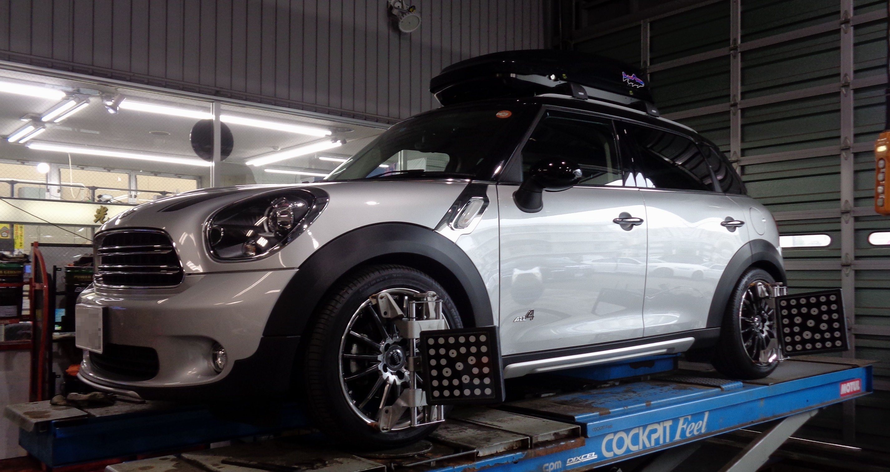 4輪アライメントの 測定&調整作業を開始。