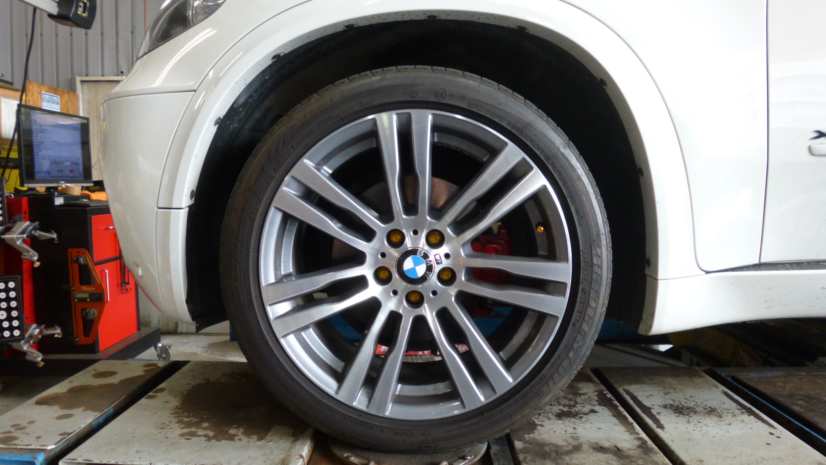 4輪アライメントの測定&調整作業を開始します。