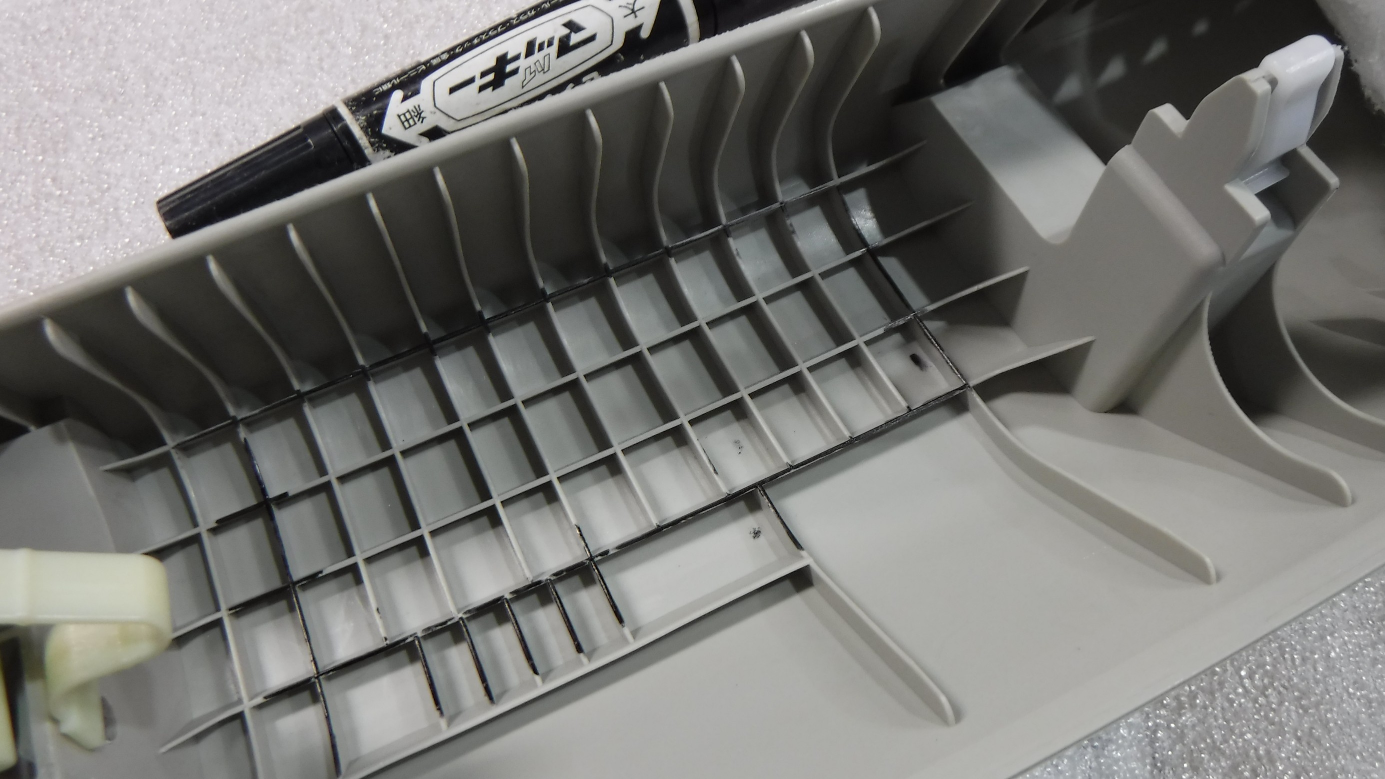 補強リブを削り取る位置も決めて・・・