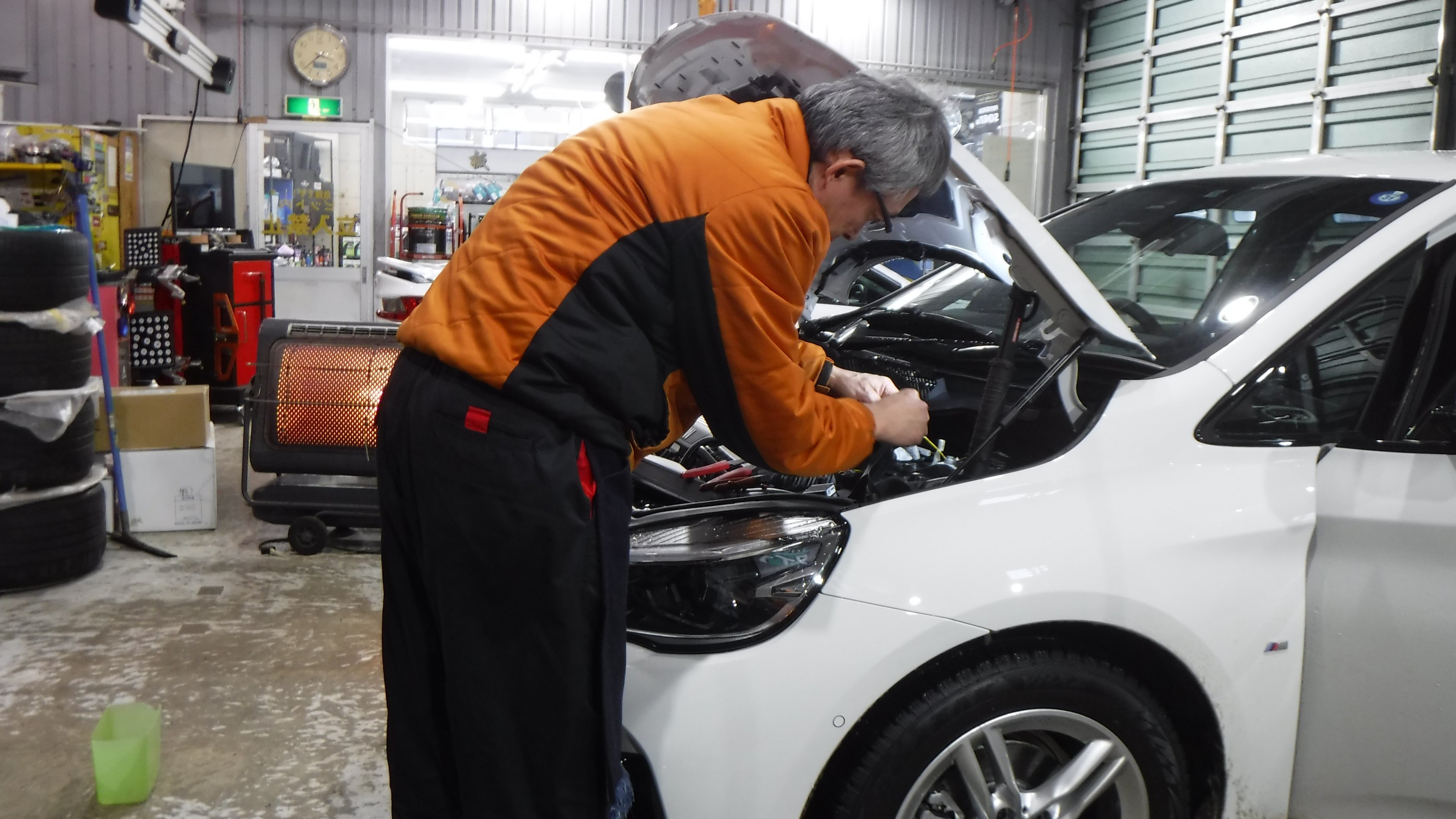 エンジンルーム側からの作業も必要になります。