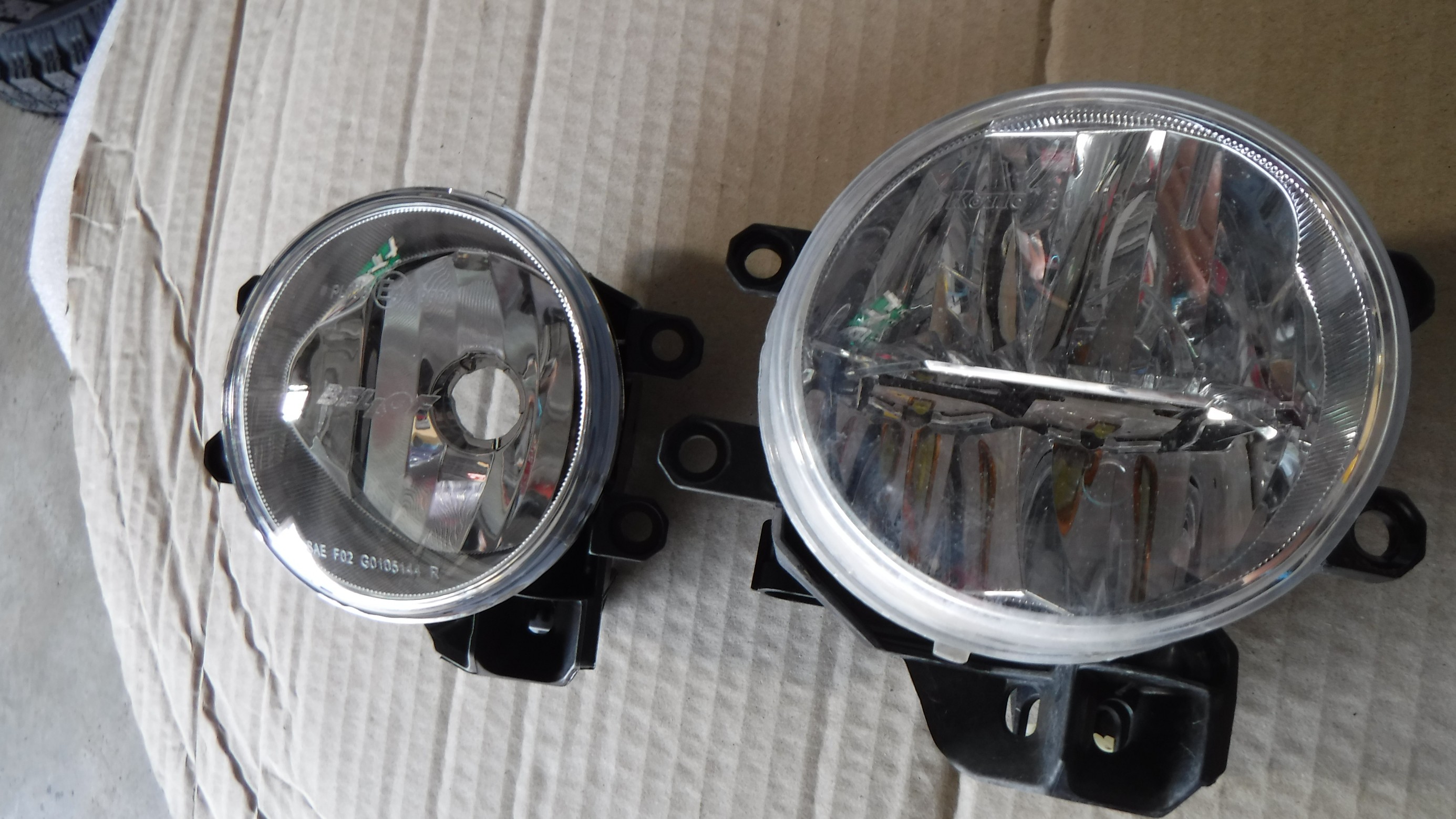 上の写真 右側が純正のLEDフォグランプ
