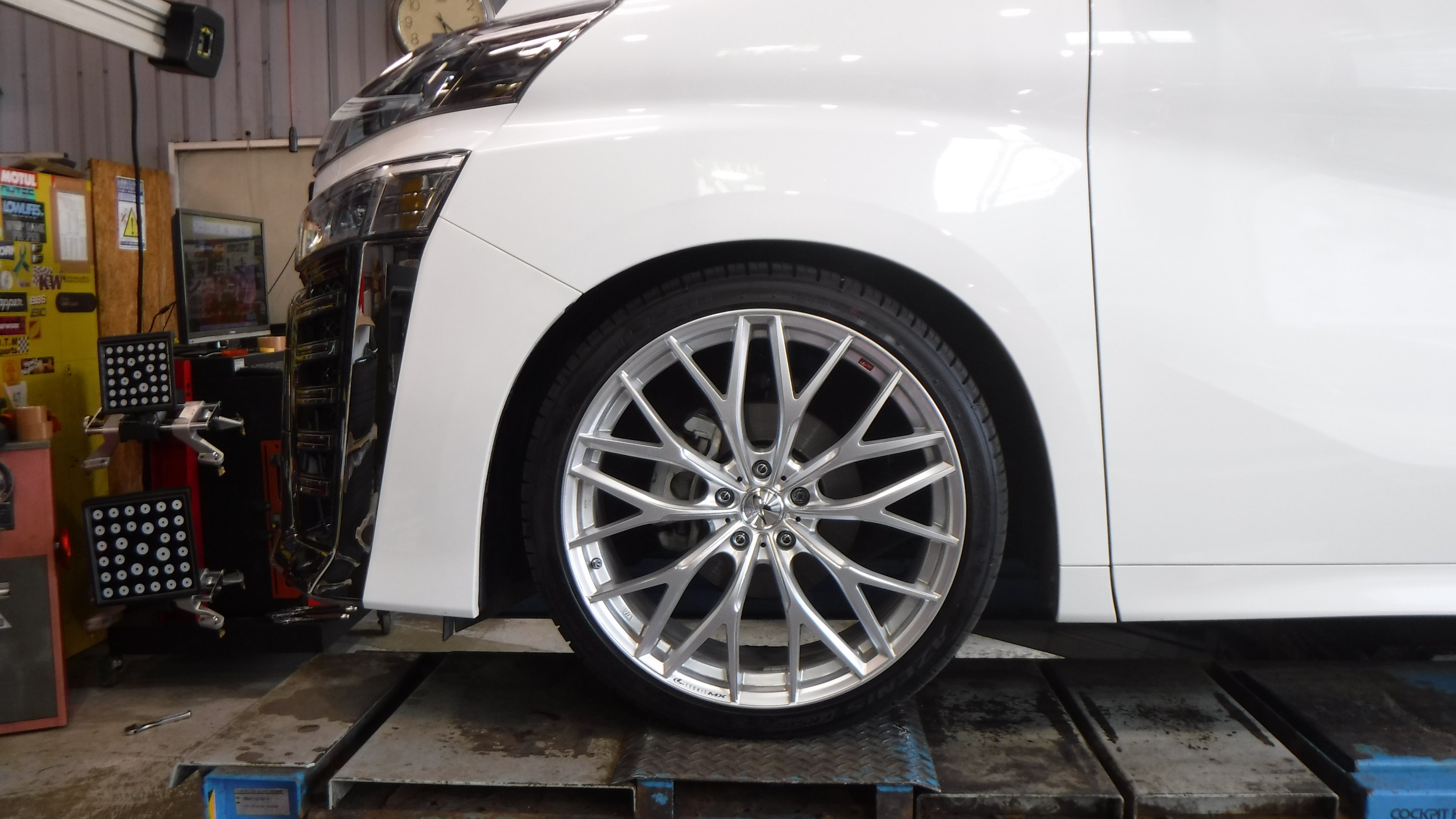 4輪アライメントの測定と調整を作業。