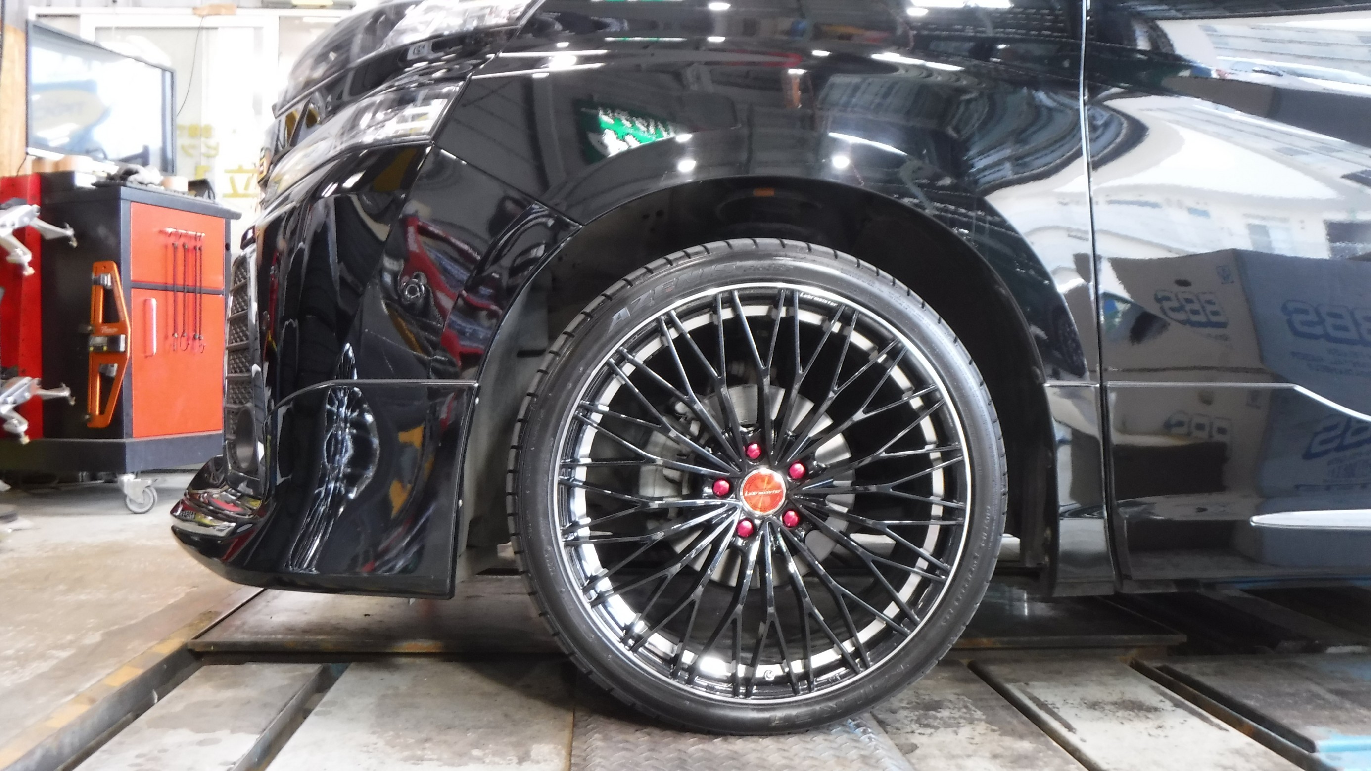 4輪アライメントの測定と調整を作業。
