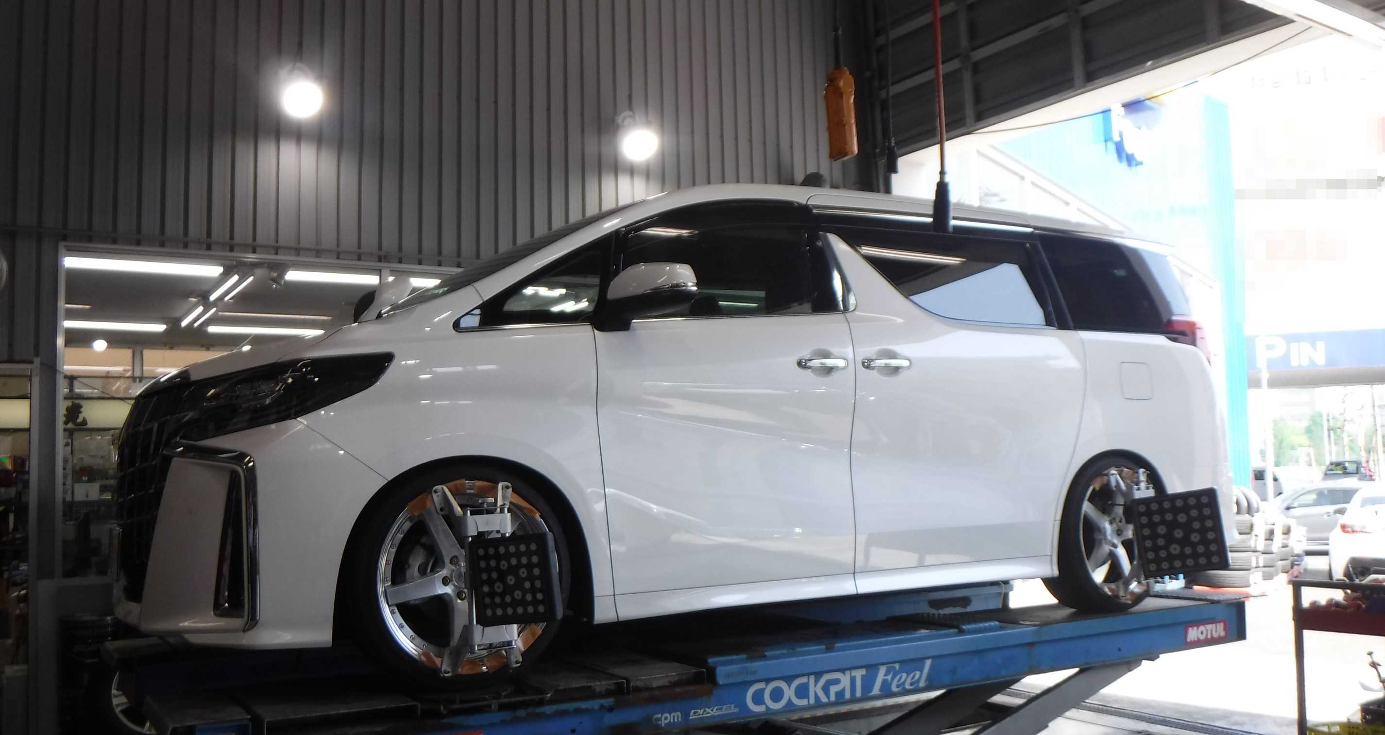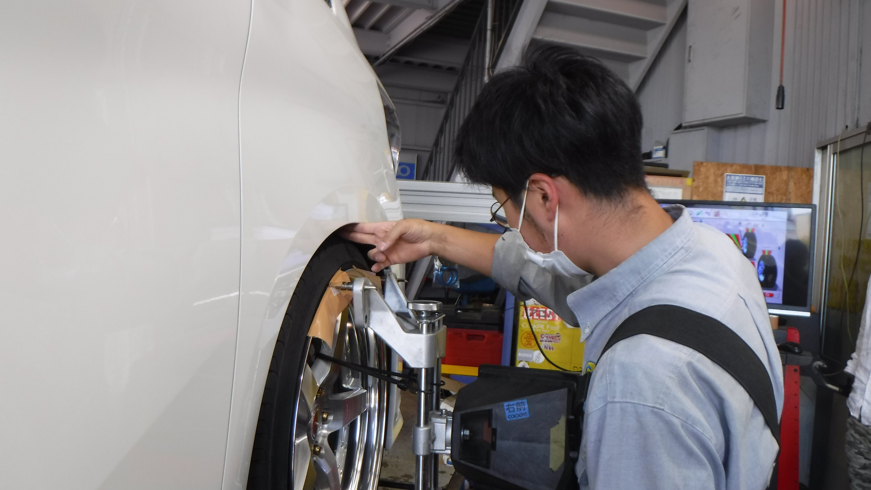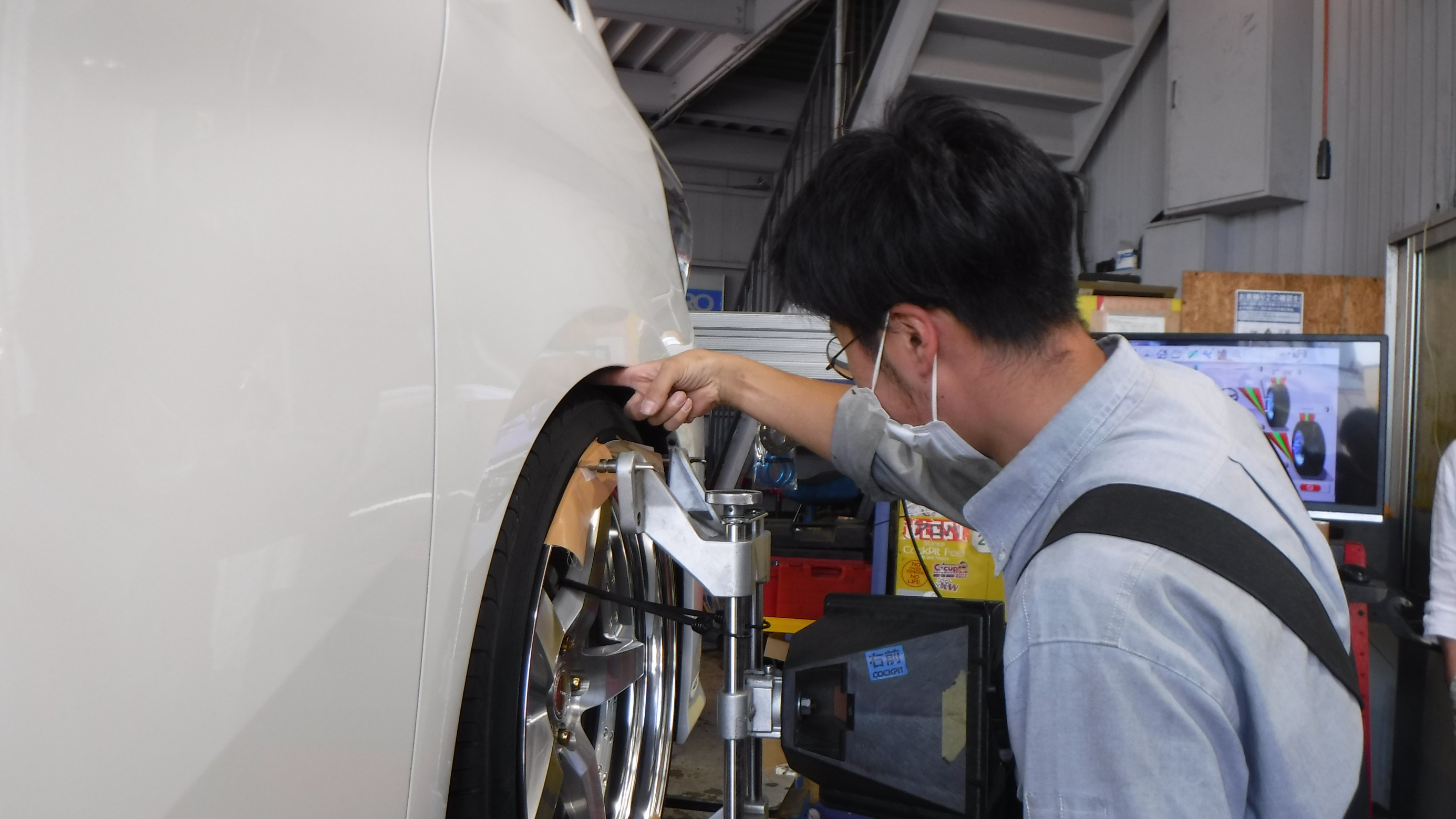 4輪アライメントの測定と調整を作業。