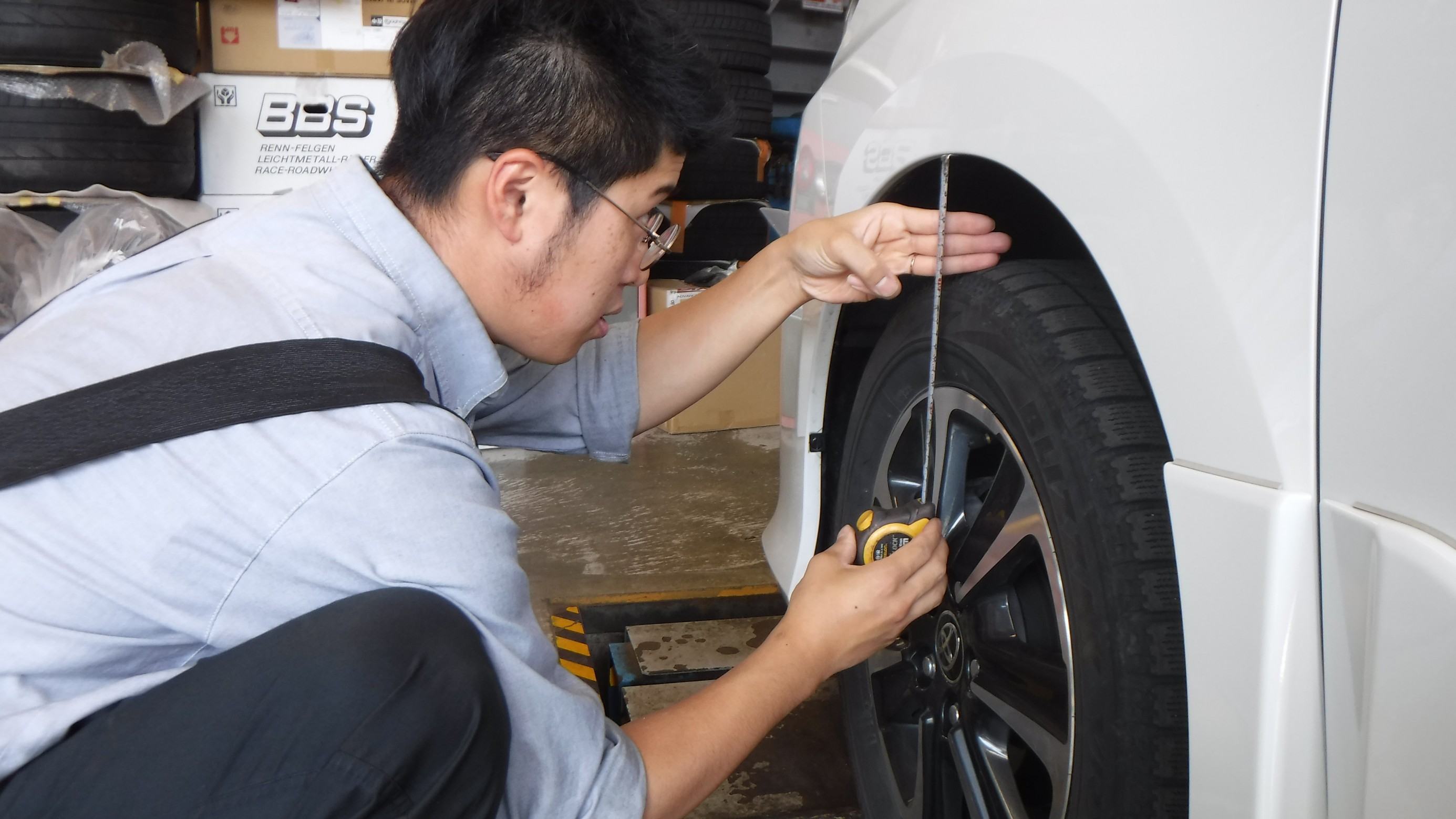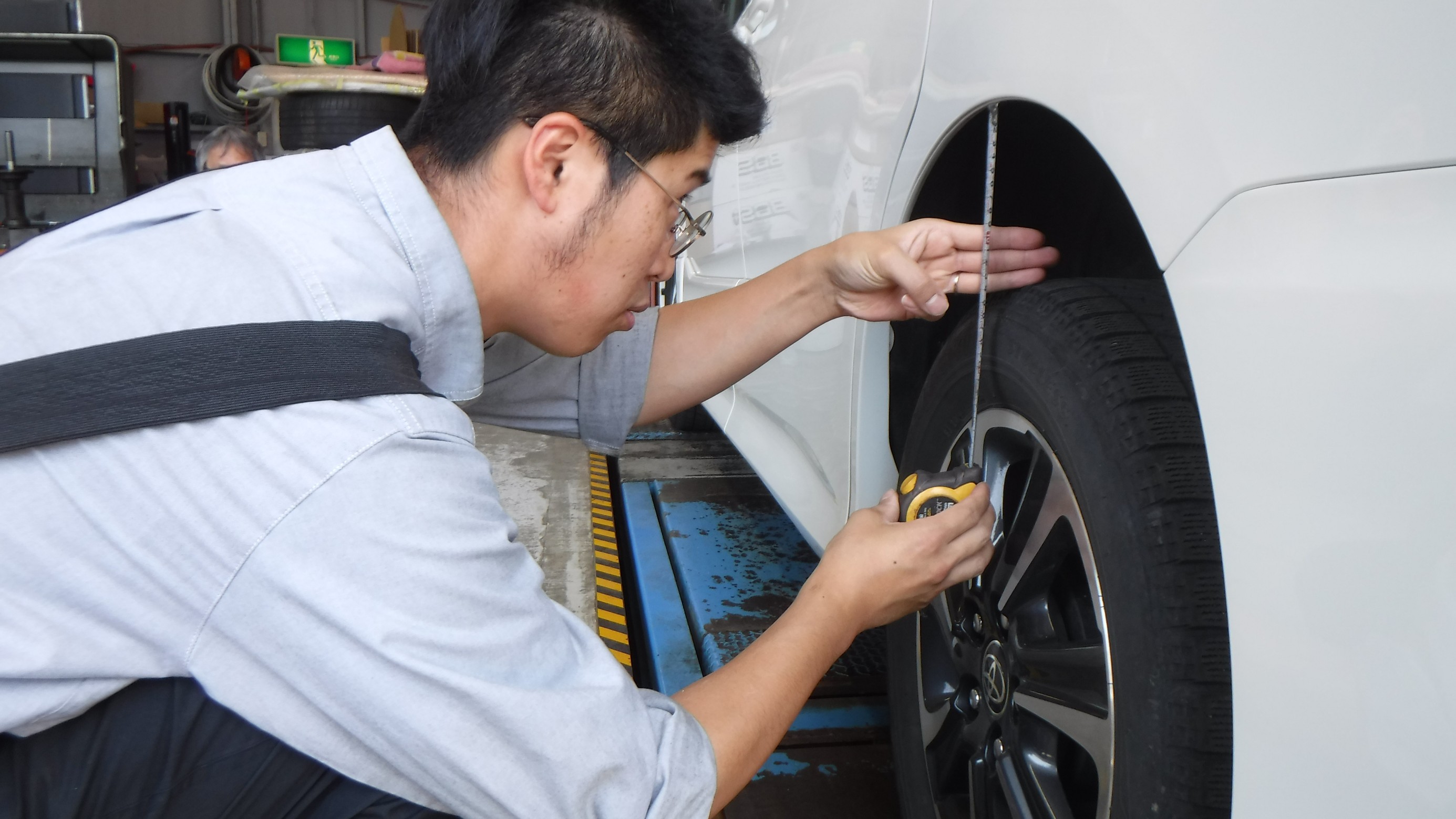 4輪アライメントの測定と調整を作業。