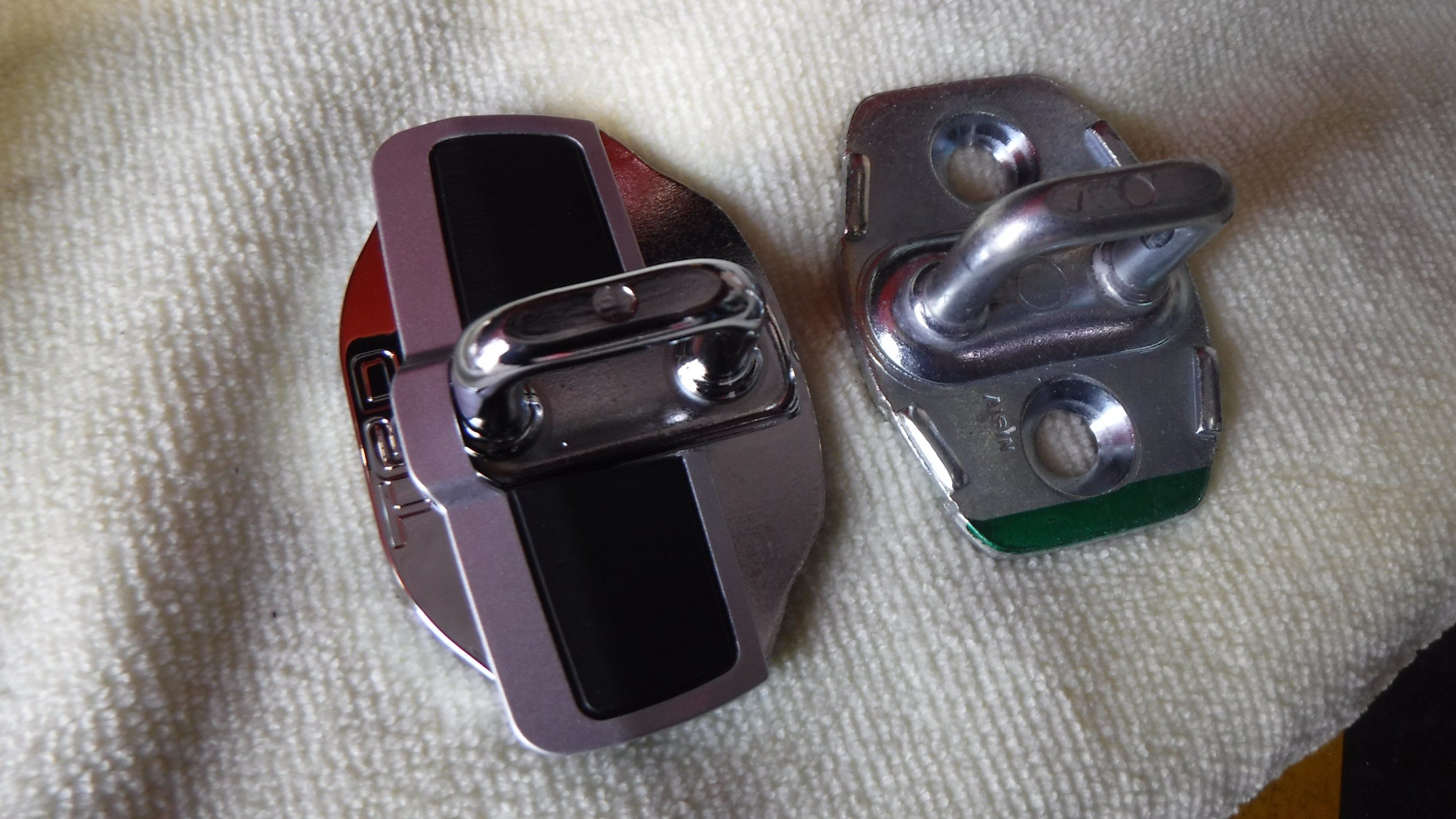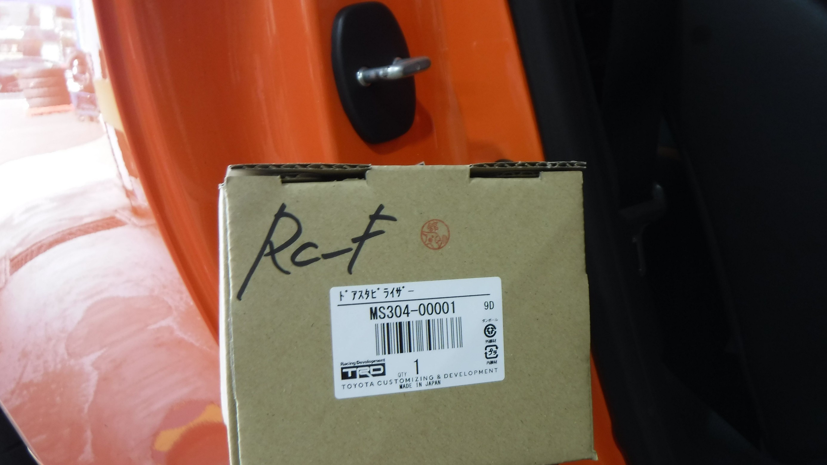 TRD製のドアストライカーと 並べて撮影。