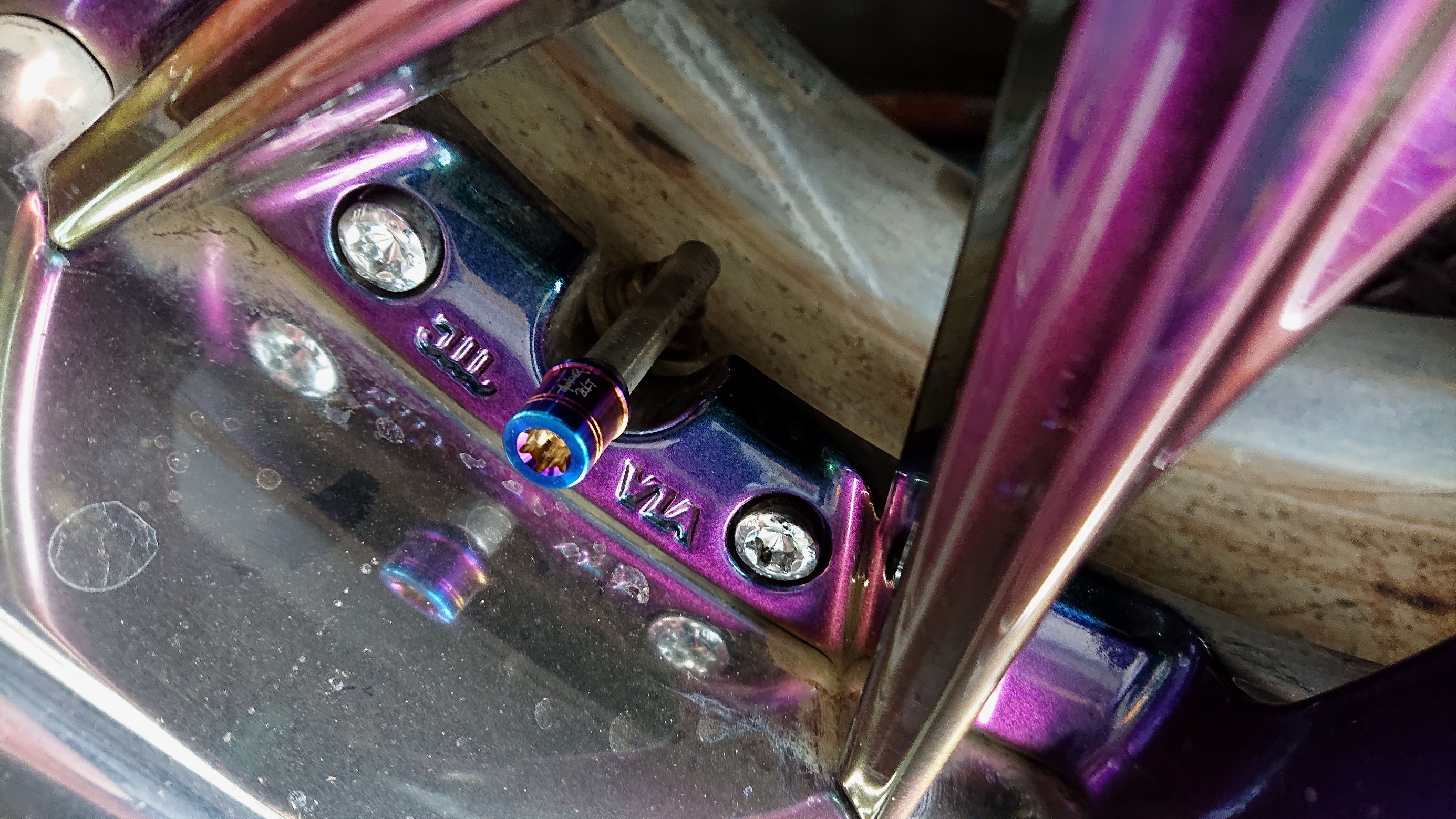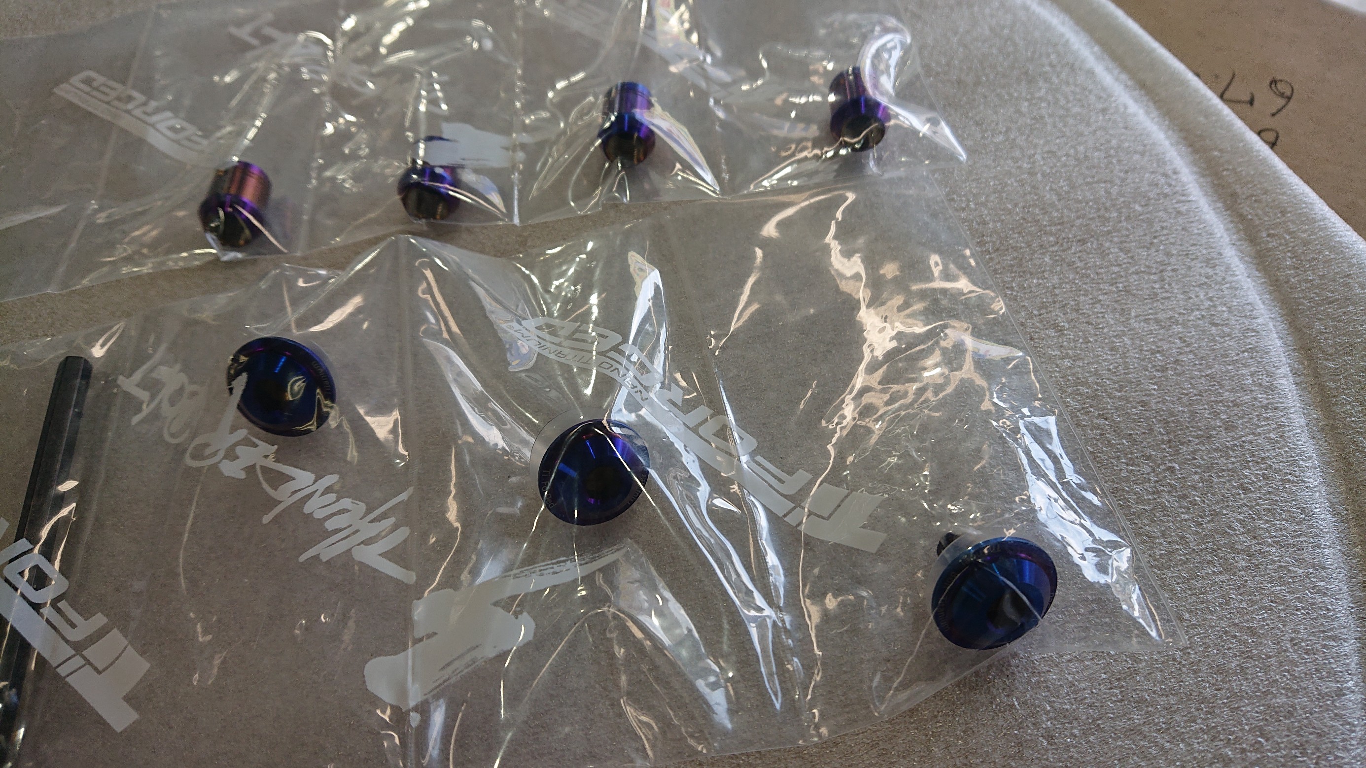 ライセンスボルトとエアーバルブキャップを装着。