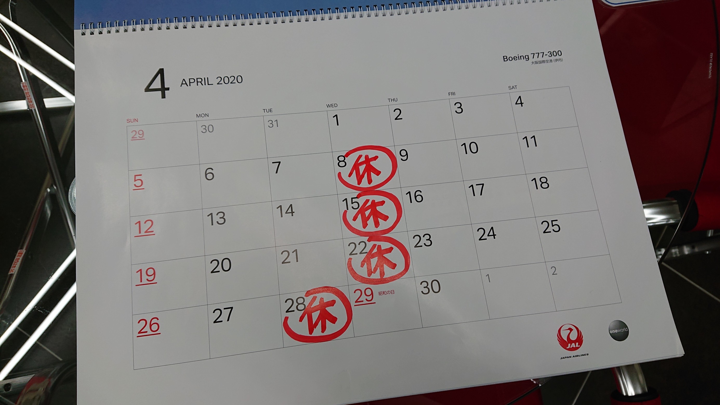 令和2年 4月の店舗休日は