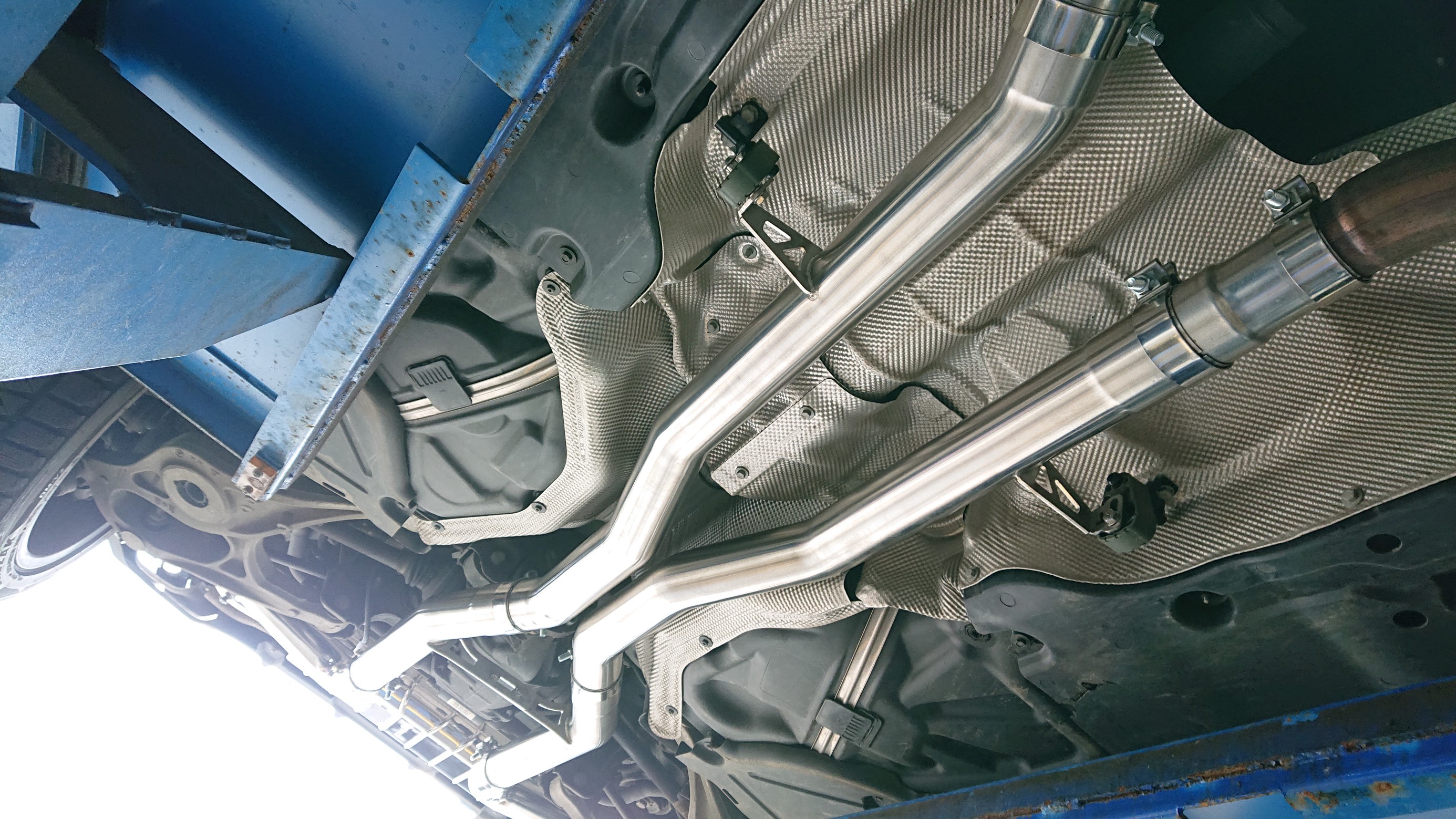 フロントのダウンパイプ以降から