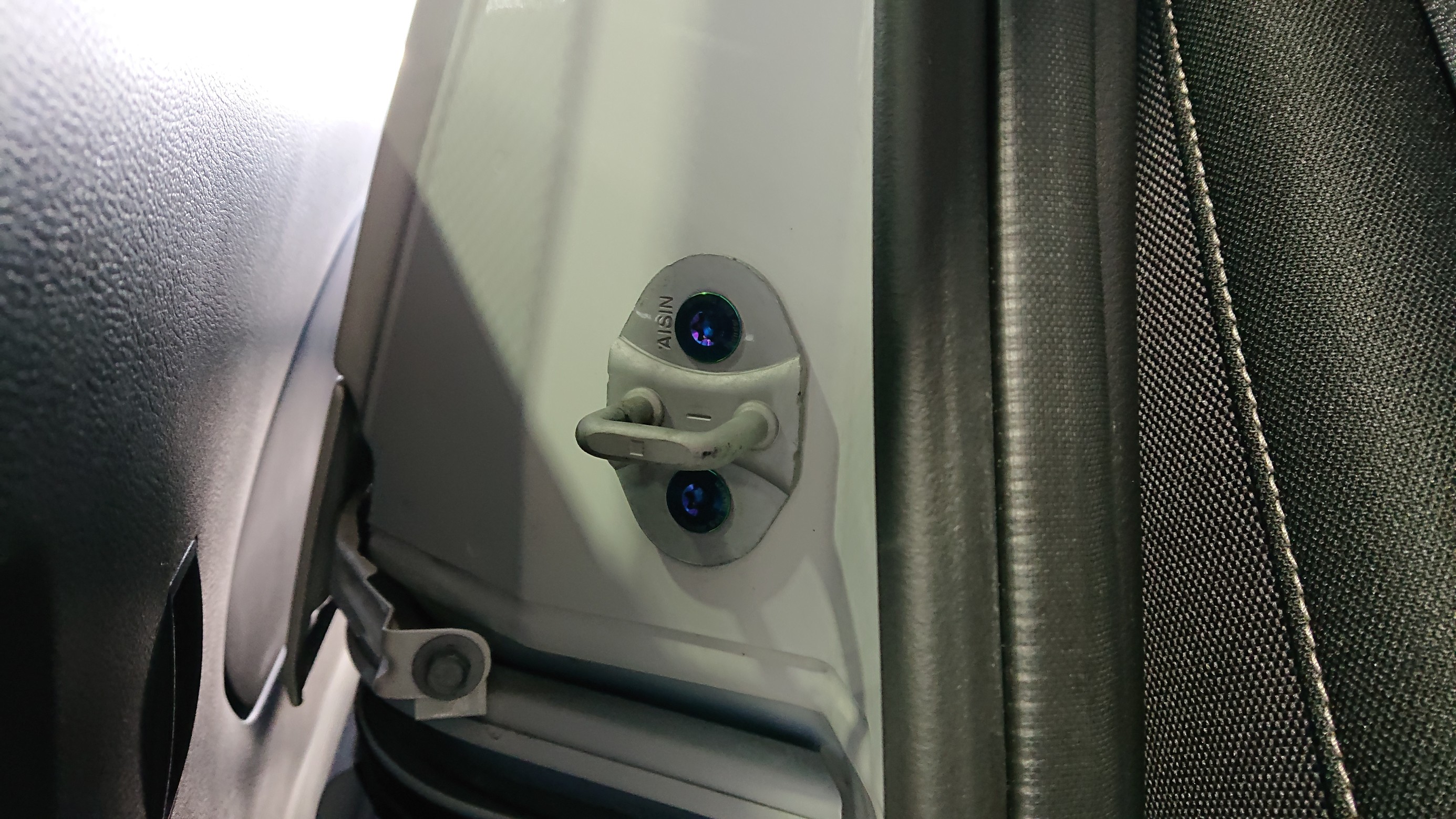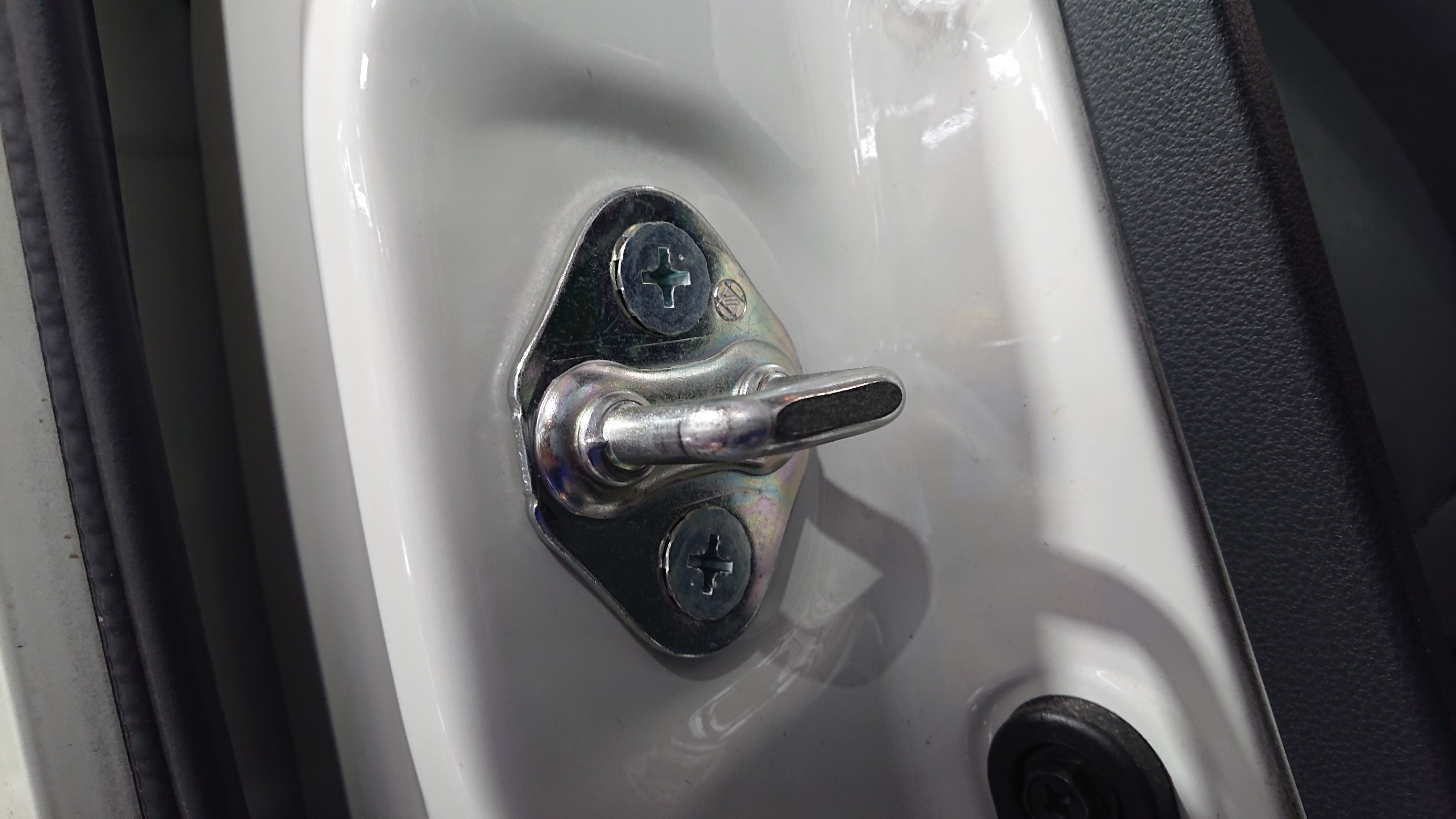 純正状態のフロントドア ストライカー部