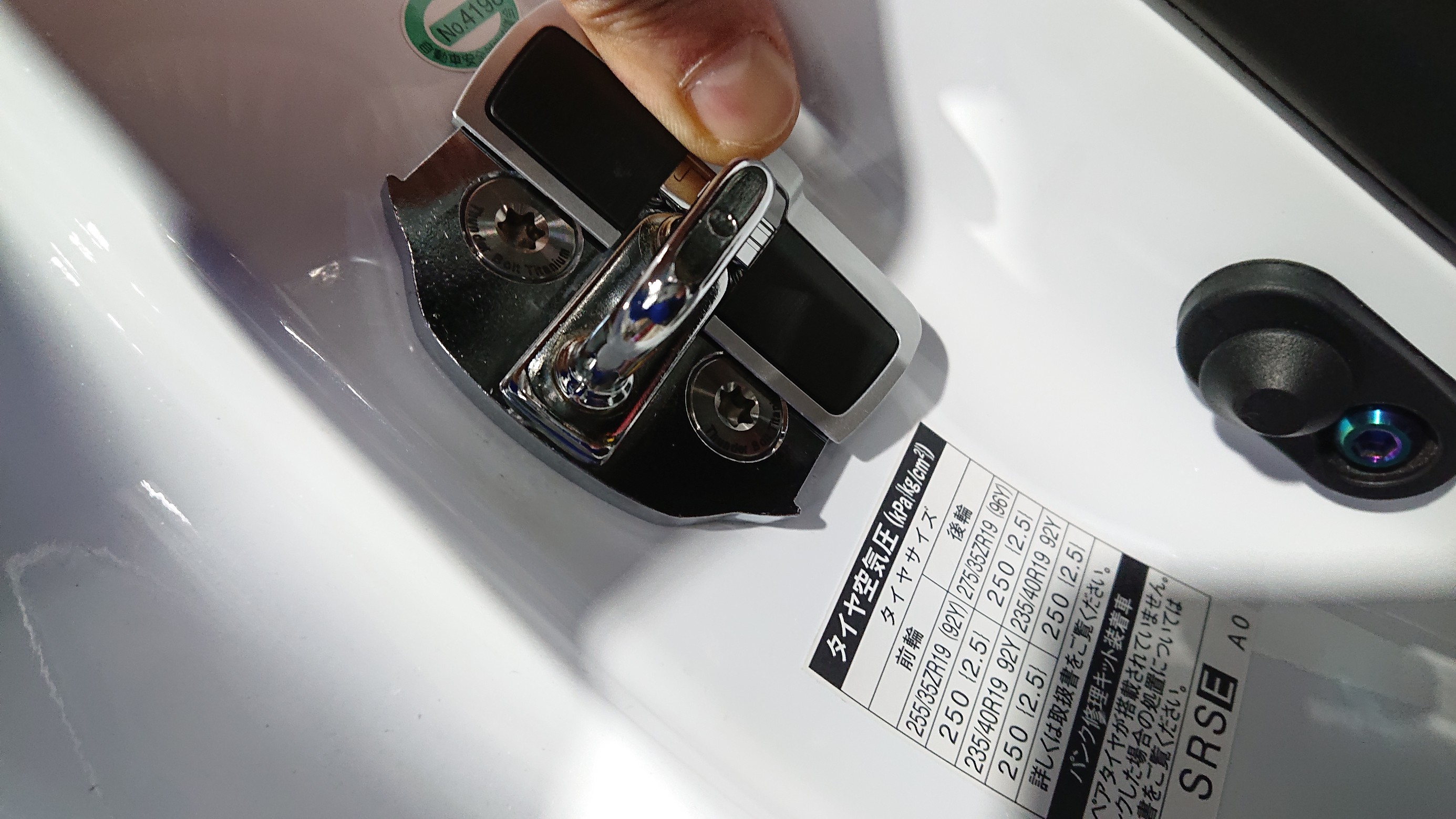 M8ドアストライカーボルト(¥1340- 税別)を取付。