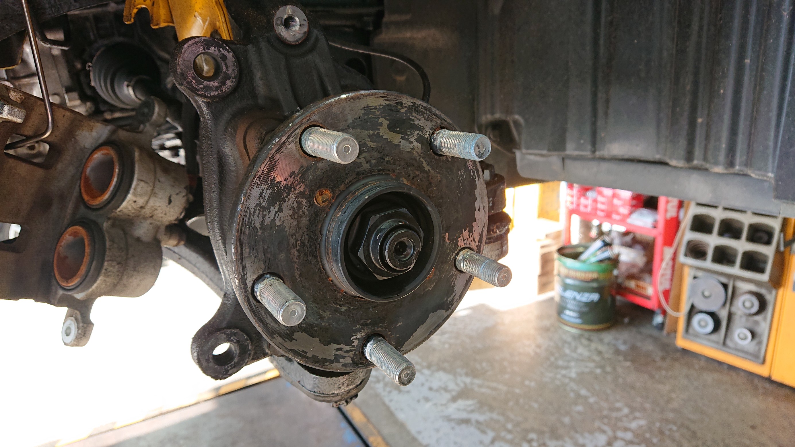 リアの純正ブレーキを外して