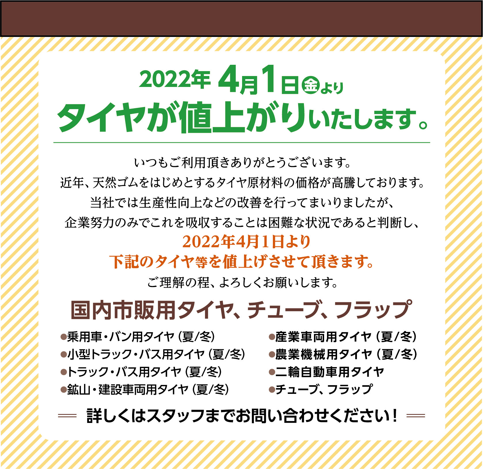 値上がりします・・・