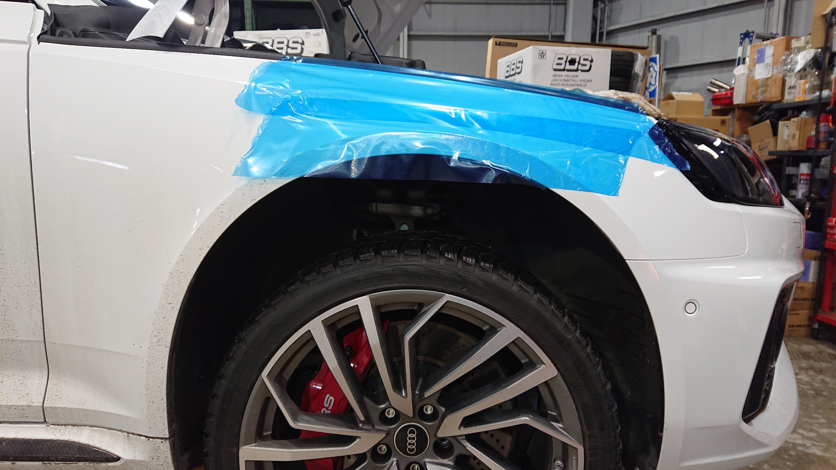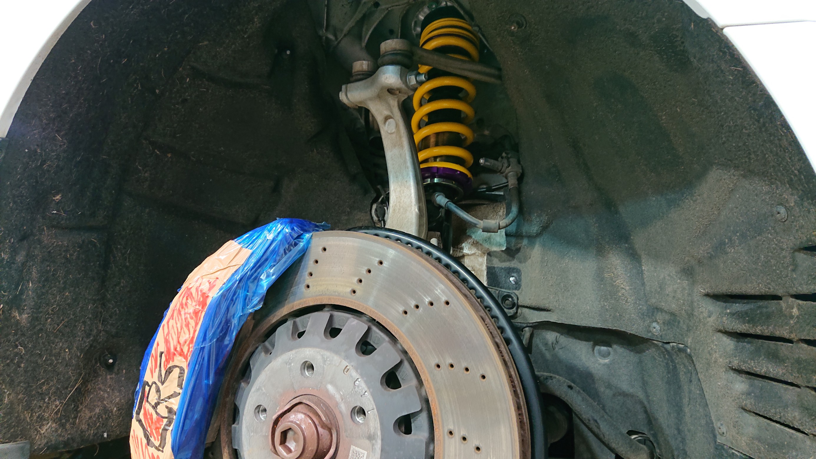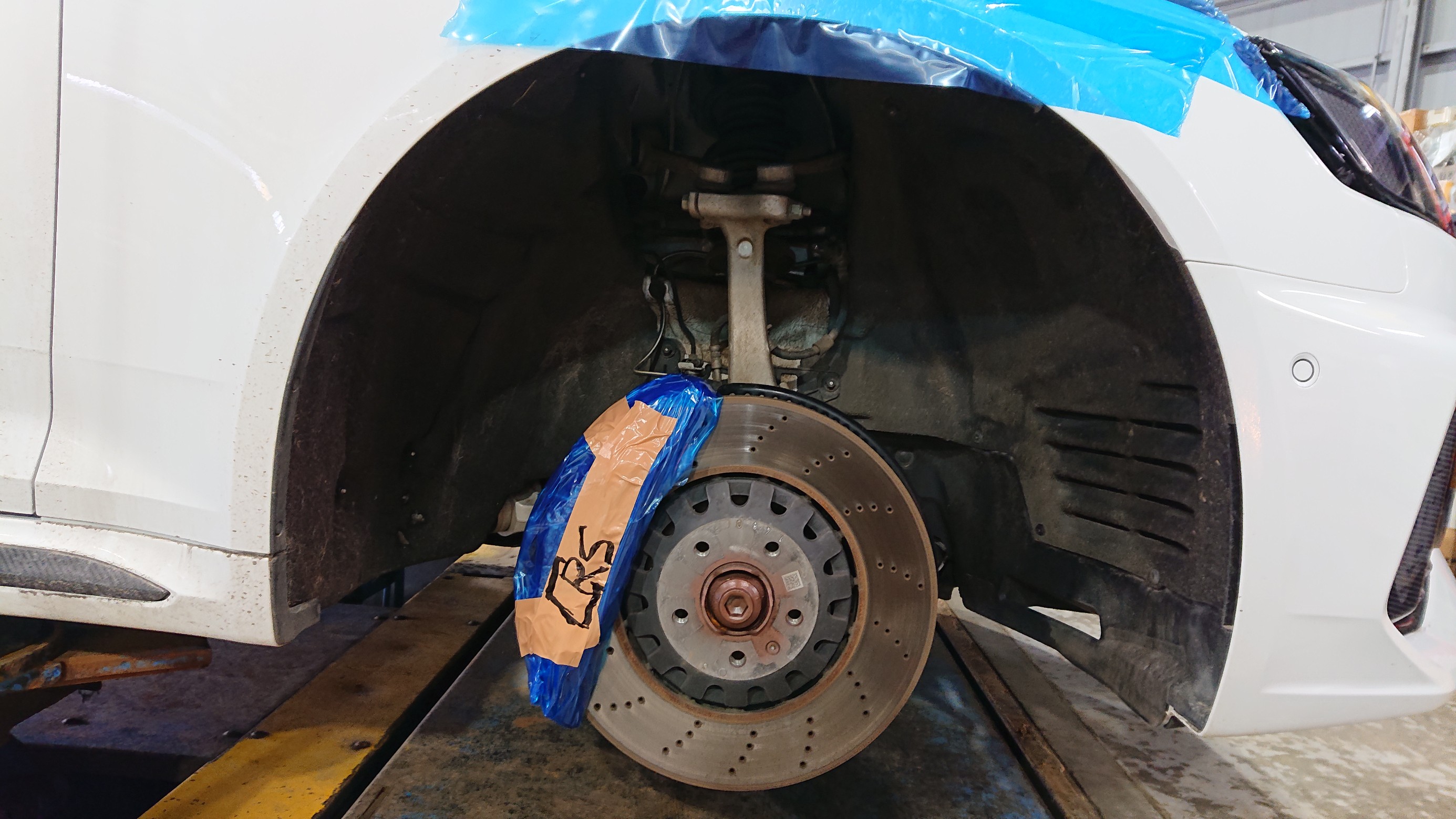 ブレーキキャリパーを養生して