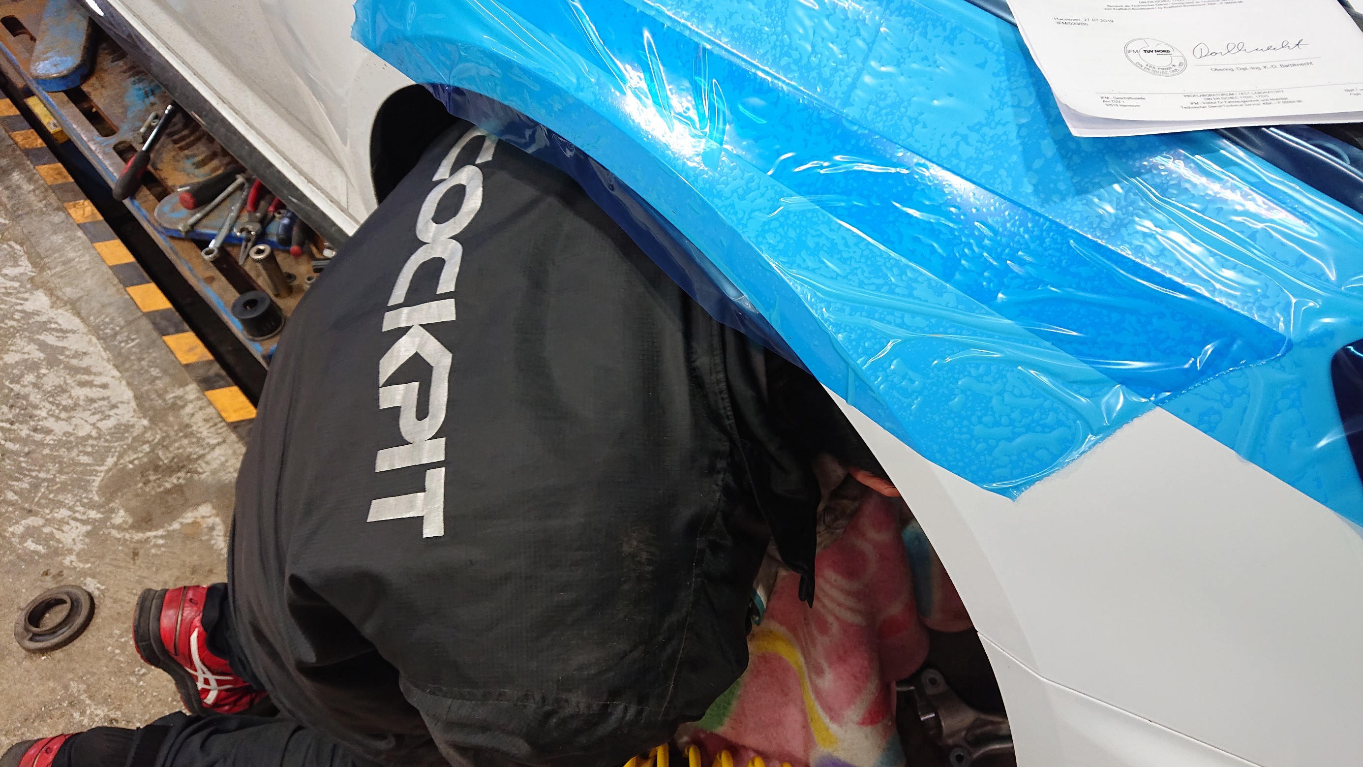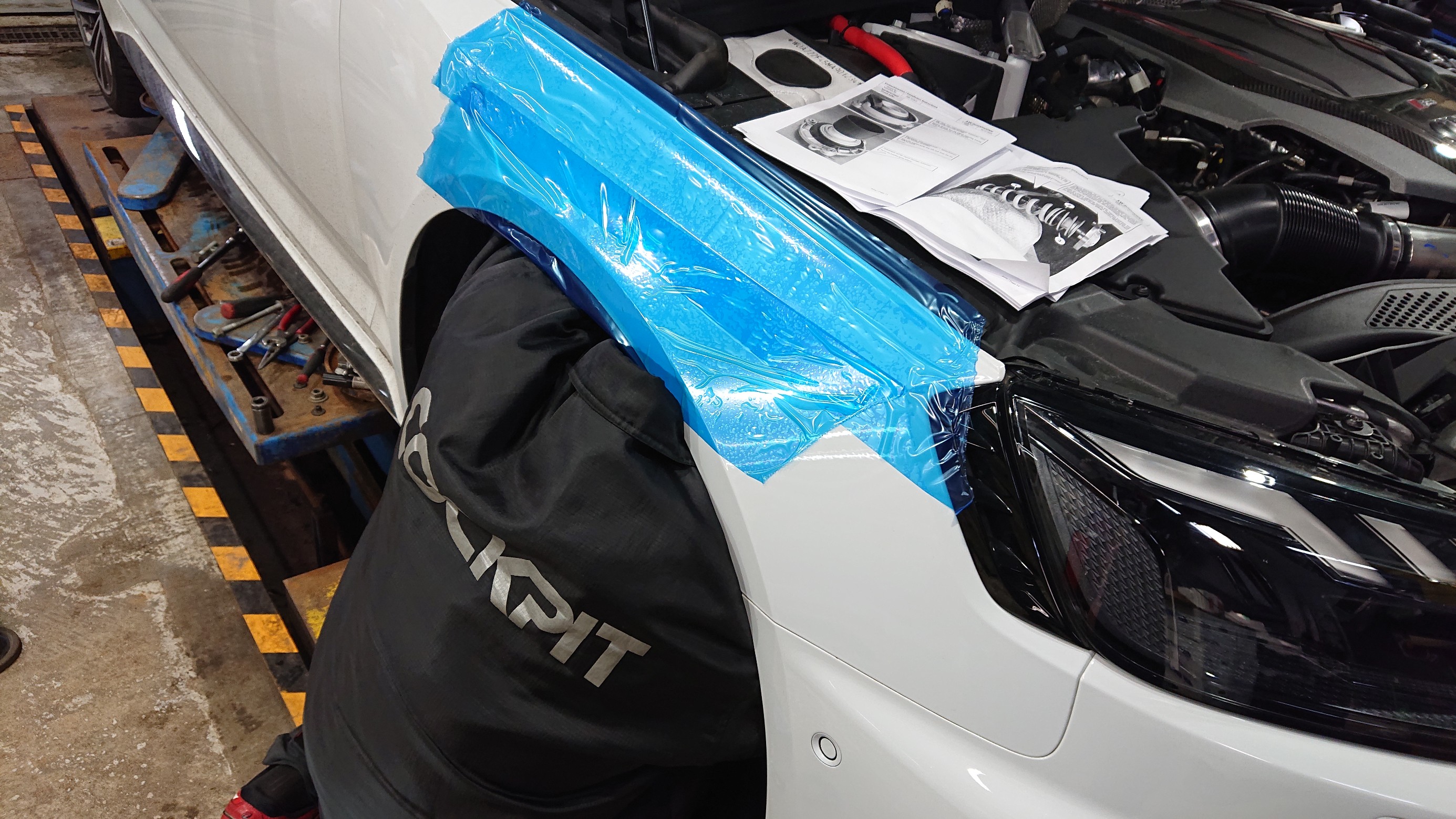 フェンダーの内部で作業しています。