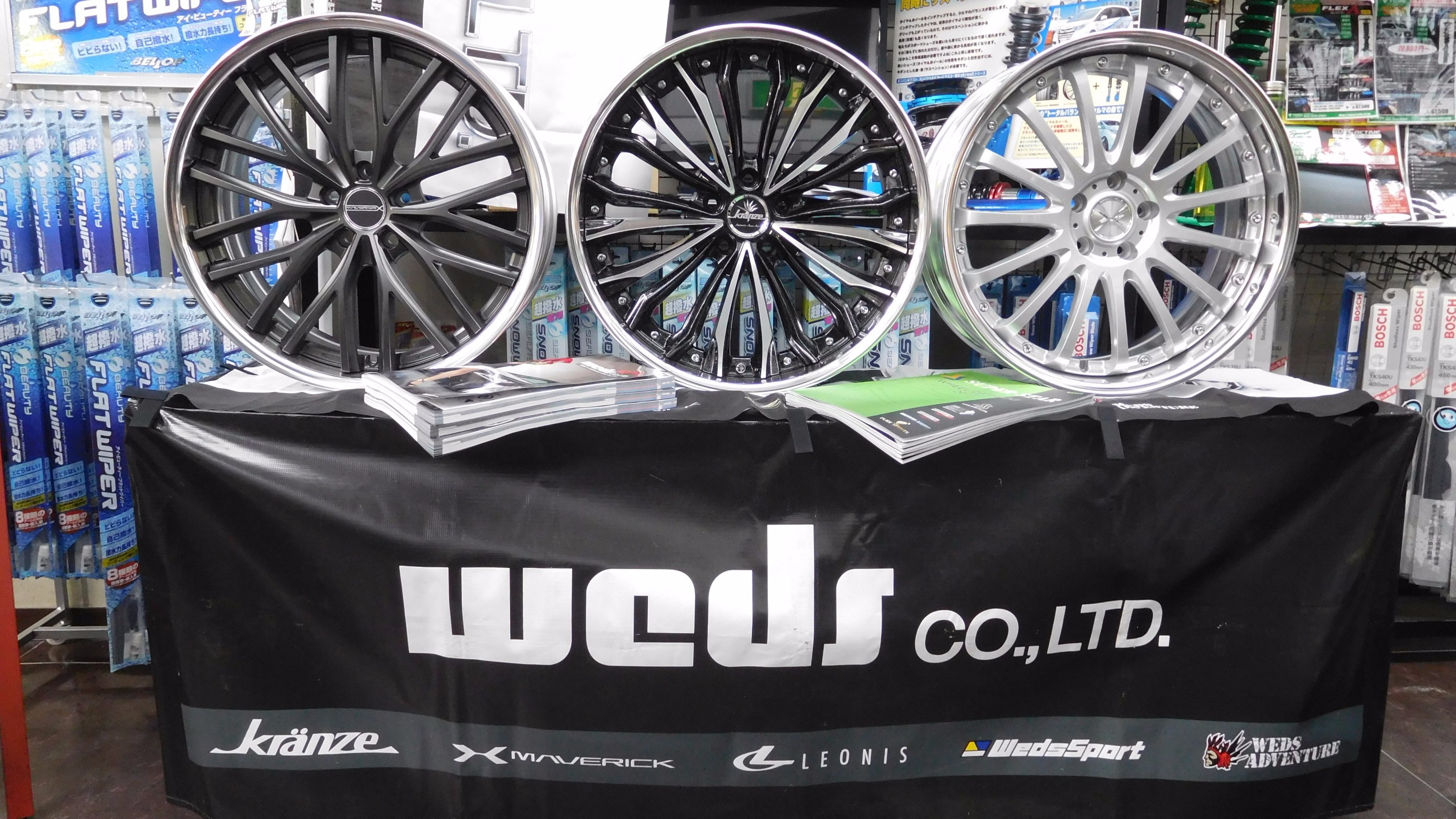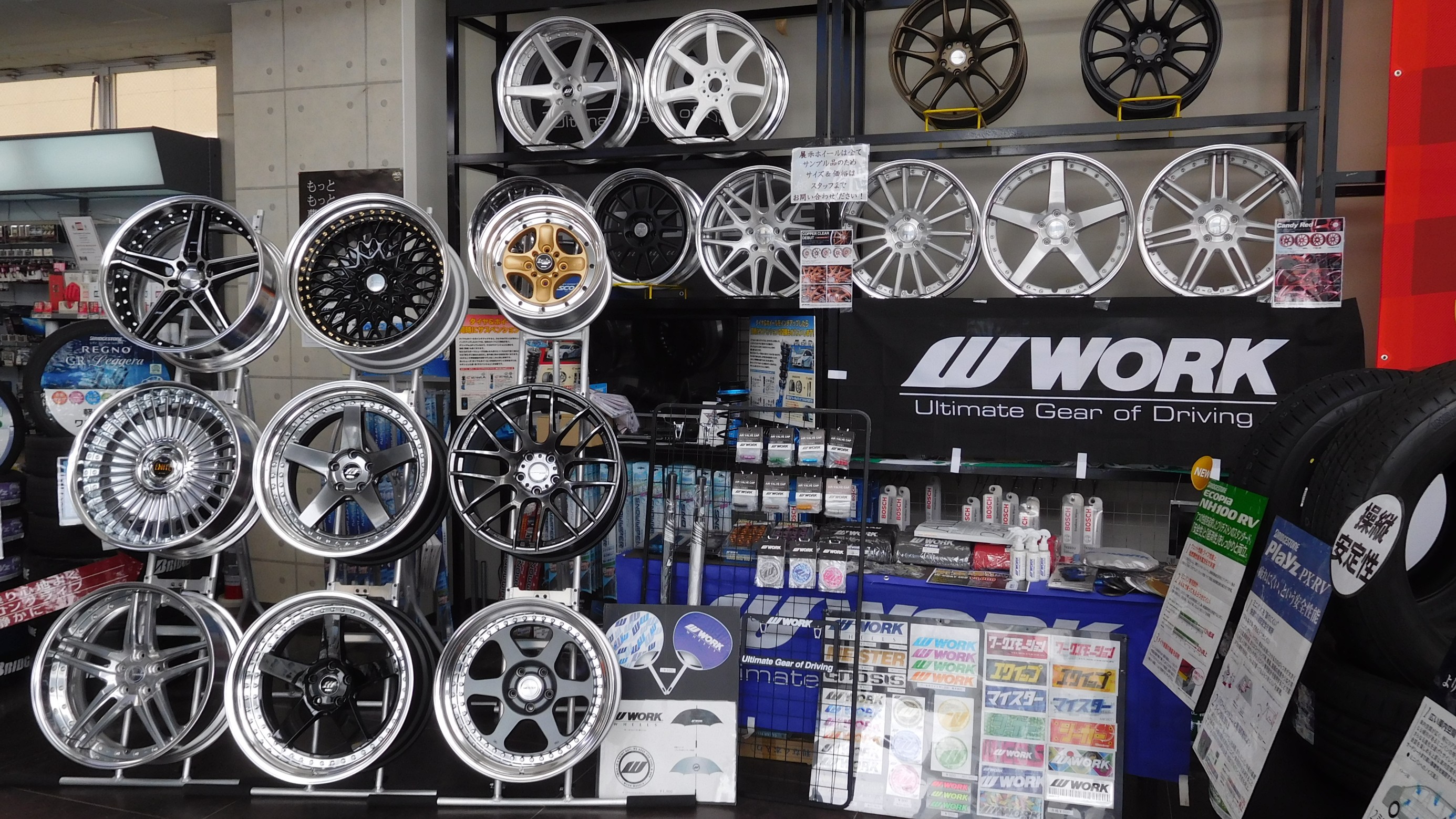 展示するホイールや
