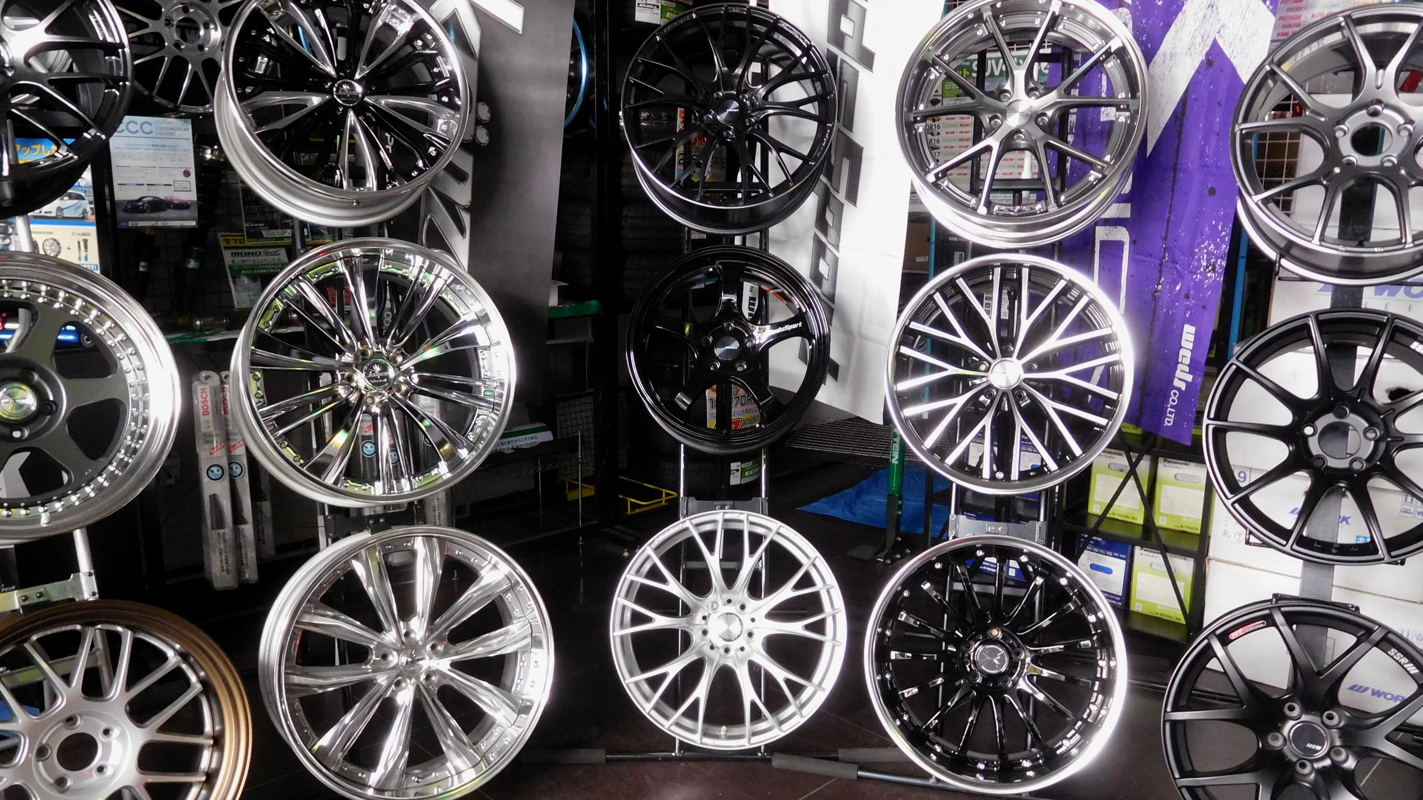 展示ホイールの手配や設営して頂いた