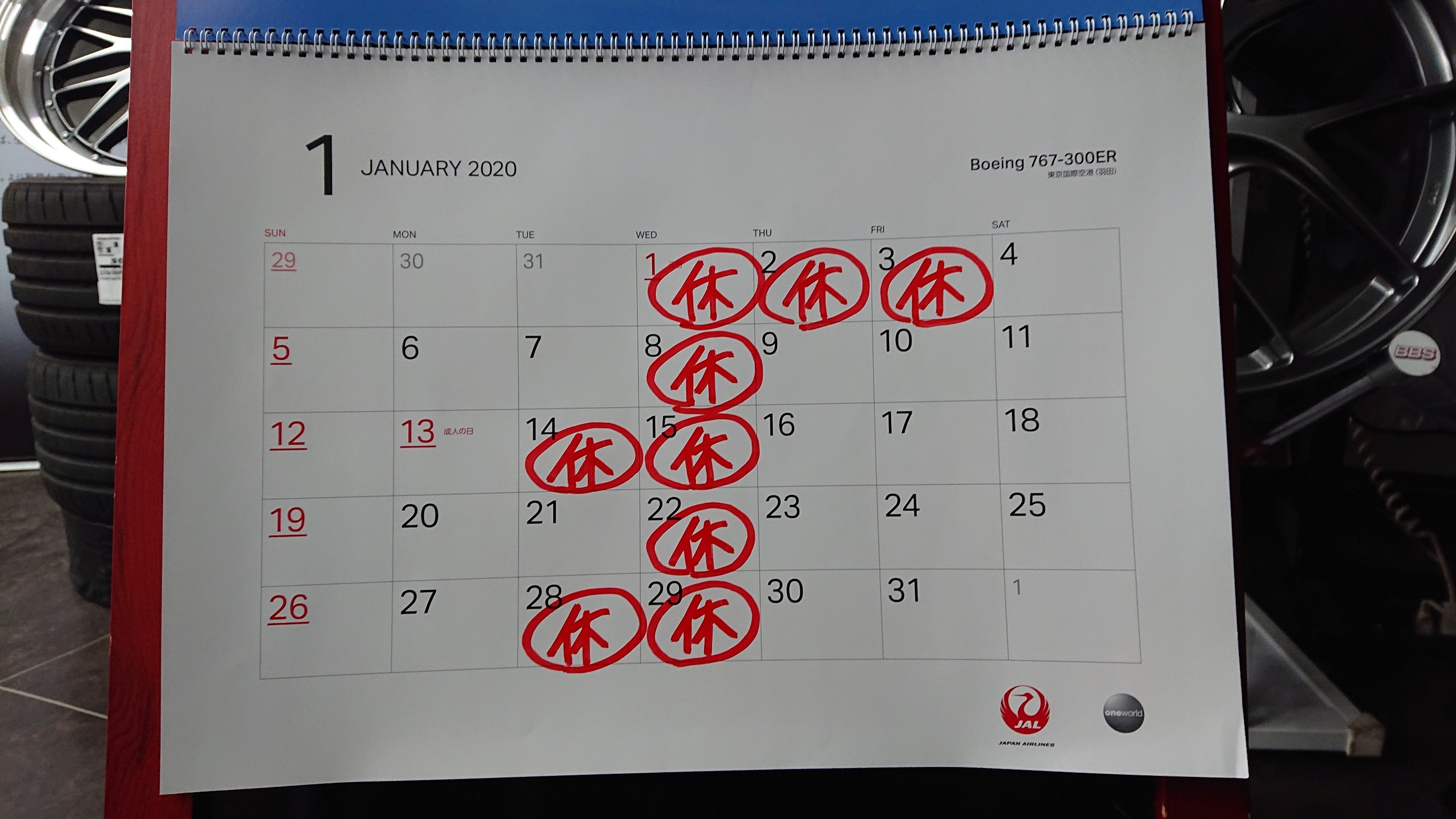 令和2年 1月の休日は