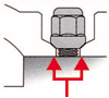 ホイールのボルト穴にはわずかな“アソビ”があるため、そのまま締め付けてしまうと“アソビ”が偏り、ホイールが回転中心からズレることがあります。