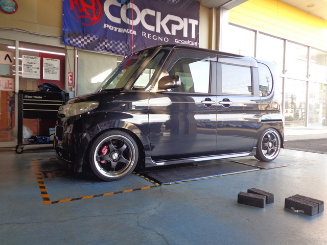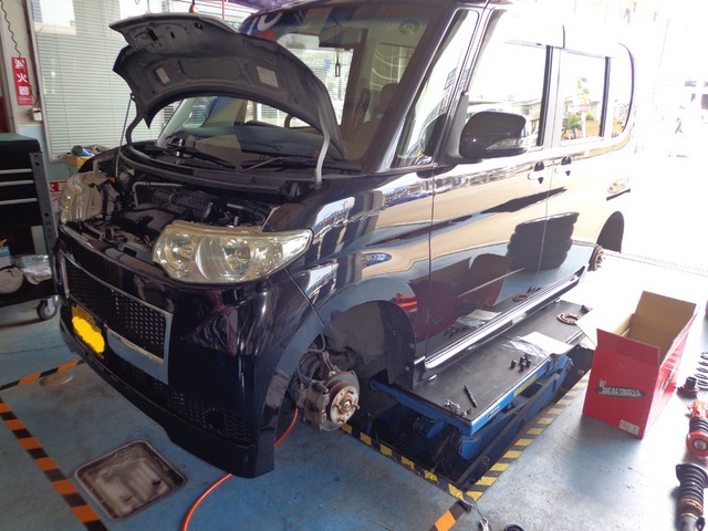 今日は、M様の彼女さんのタントを、車検と車高調の交換で作業させて頂きました。