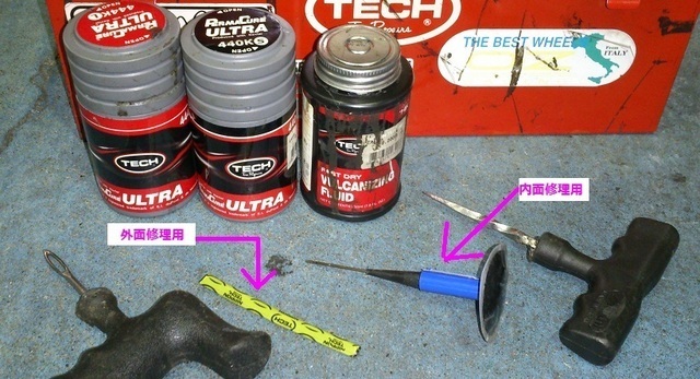 タイヤをはずして内側から穴埋め&貼付を行なう内面修理がありまして。