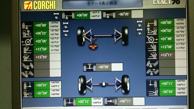 アライメントの測定結果を見ても、フロント&リアとも調整できない個所も基準値に収まっており、日ごろ丁寧に運転されているのが数字として感じられました♪