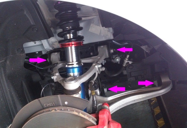 最近の良くできたマルチリンク車の場合アームの数は4~6本ほどありますので、そのすべてのブッシュがねじれた状態に。。。