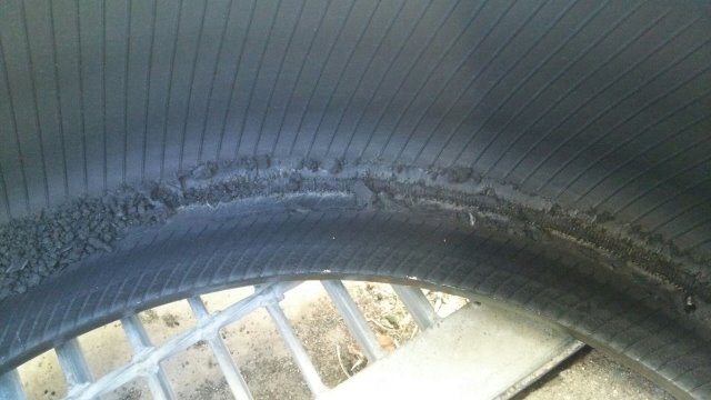 今回、タイヤ交換にて入庫された車両から外したタイヤの内部の画像です。