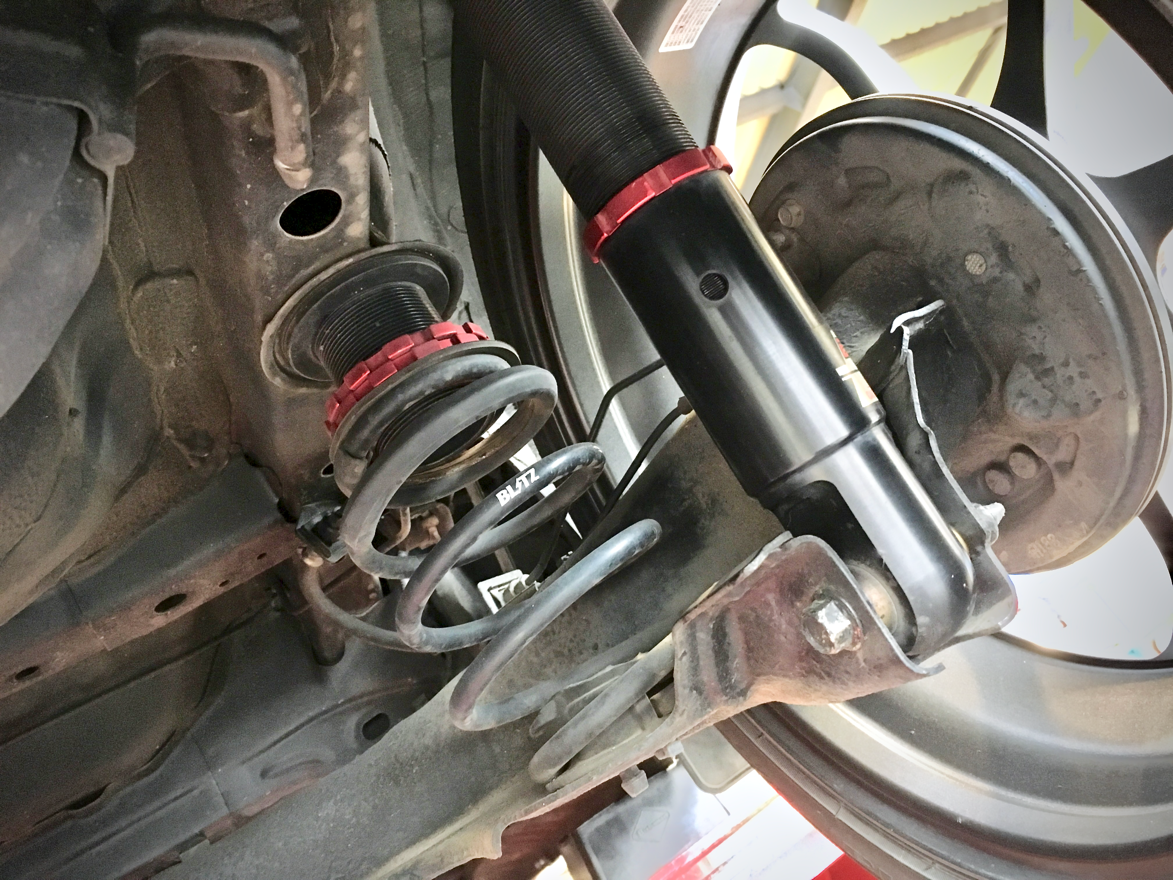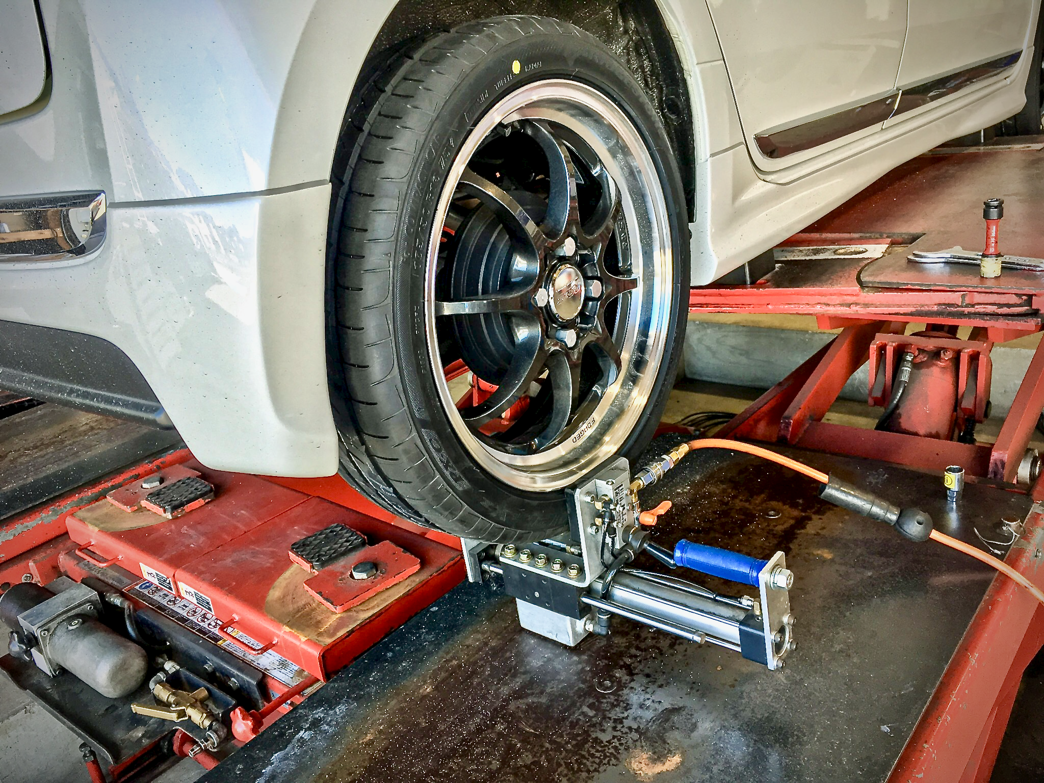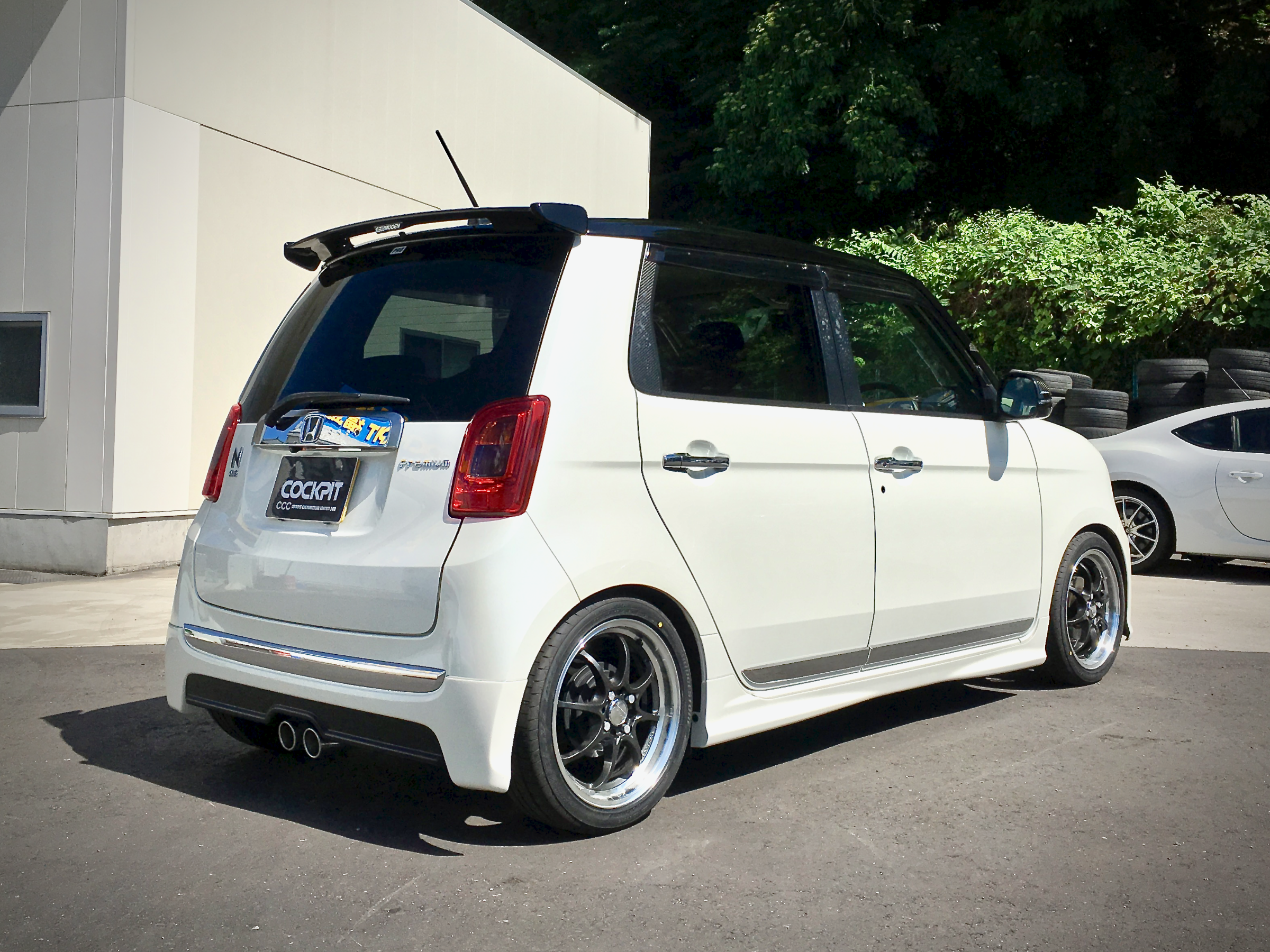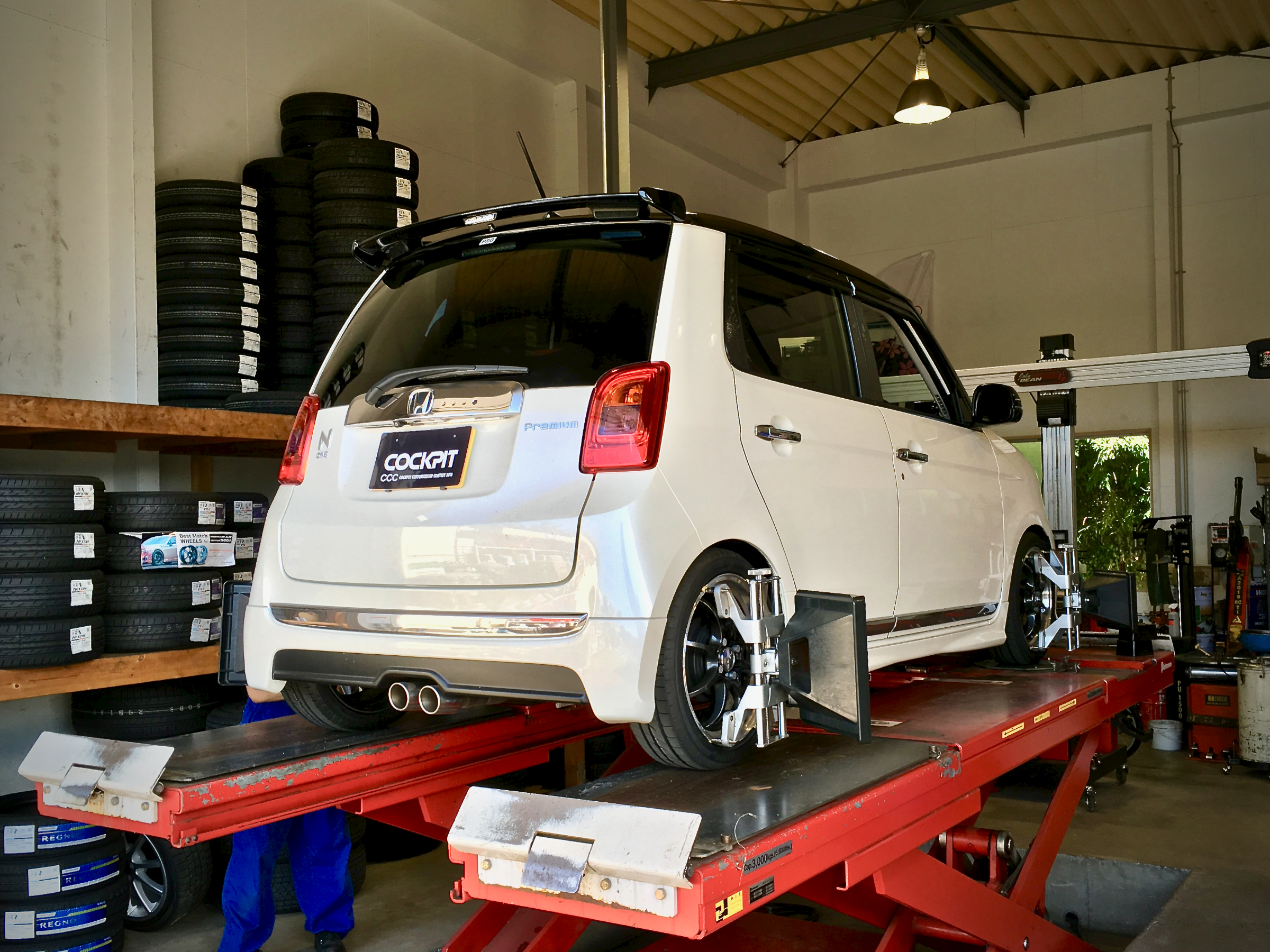 無限フルエアロがステキなN-ONE Premium Tourer。随所にオーナー様のこだわりが詰まった一台です。BLITZ DAMPER ZZ-Rのオーバーホールにあわせてスーパーアライメントを施工しました。快適通勤快足仕様です。