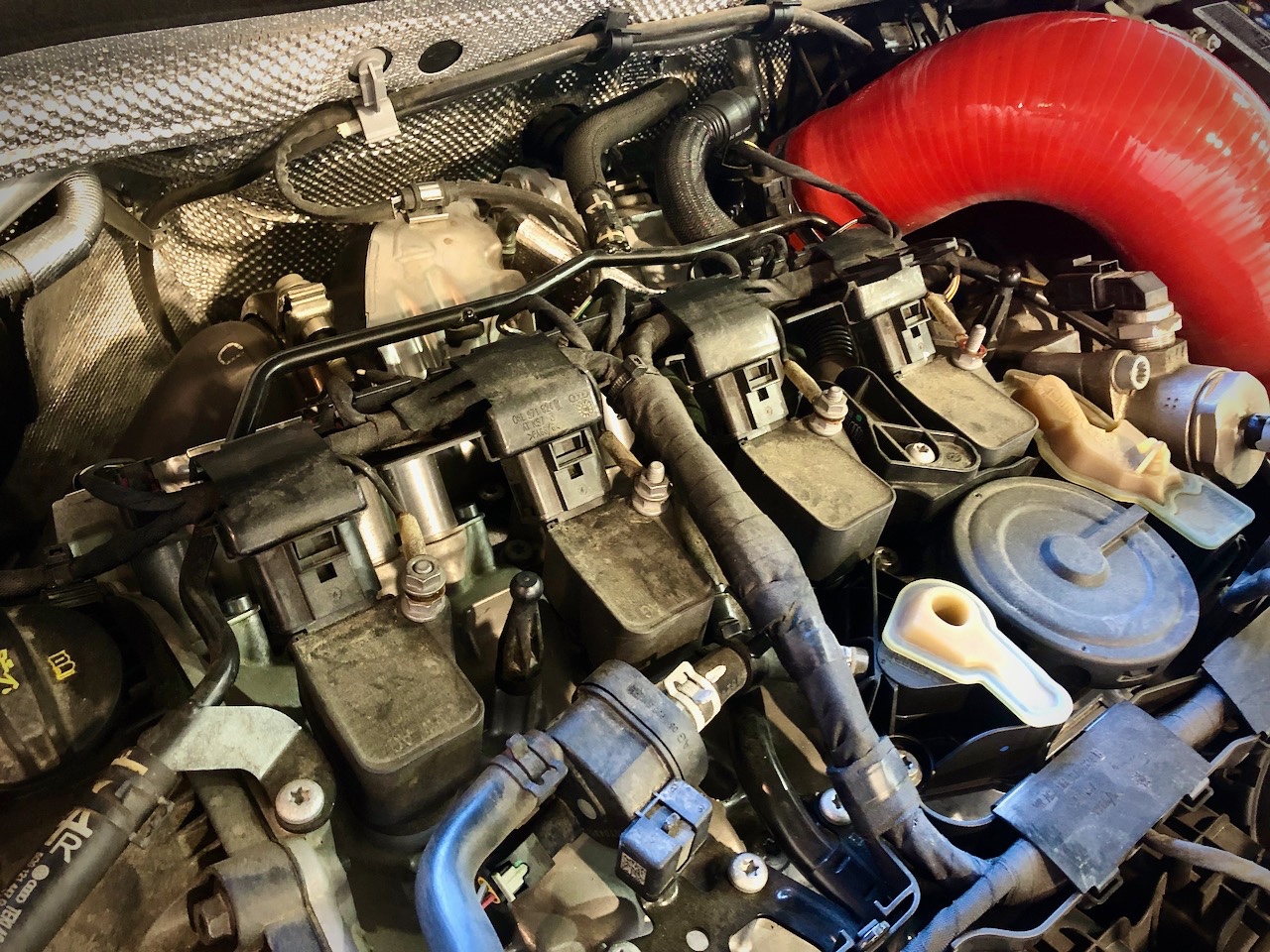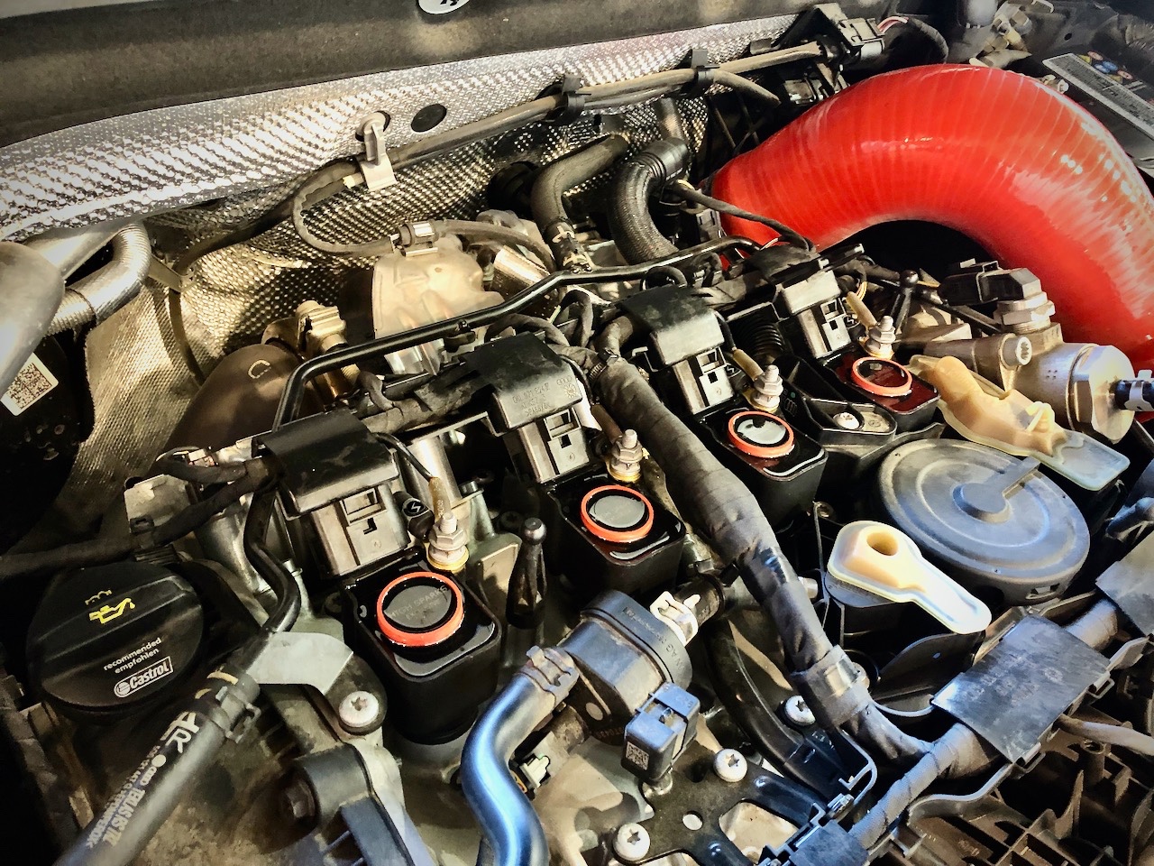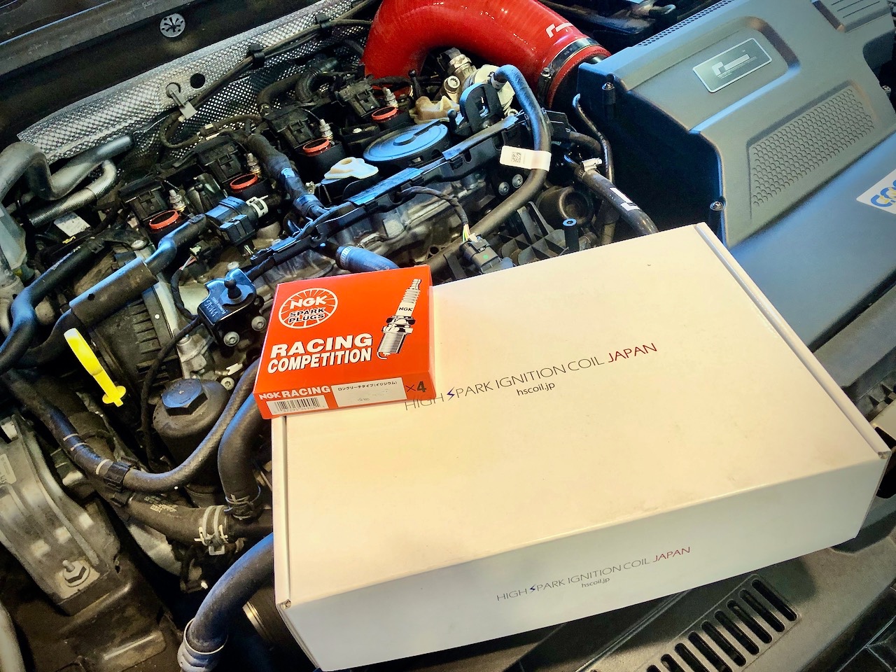 カバーを外し、ちょっとお疲れ気味の純正コイルとプラグを撤去