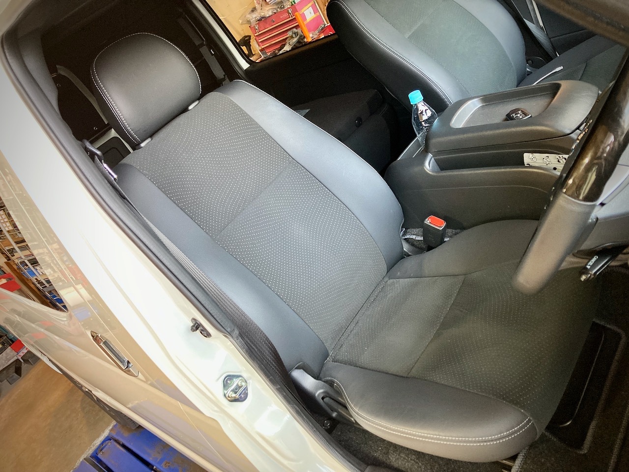 トリコット&合皮でバンにしては質感の良い純正シートですが