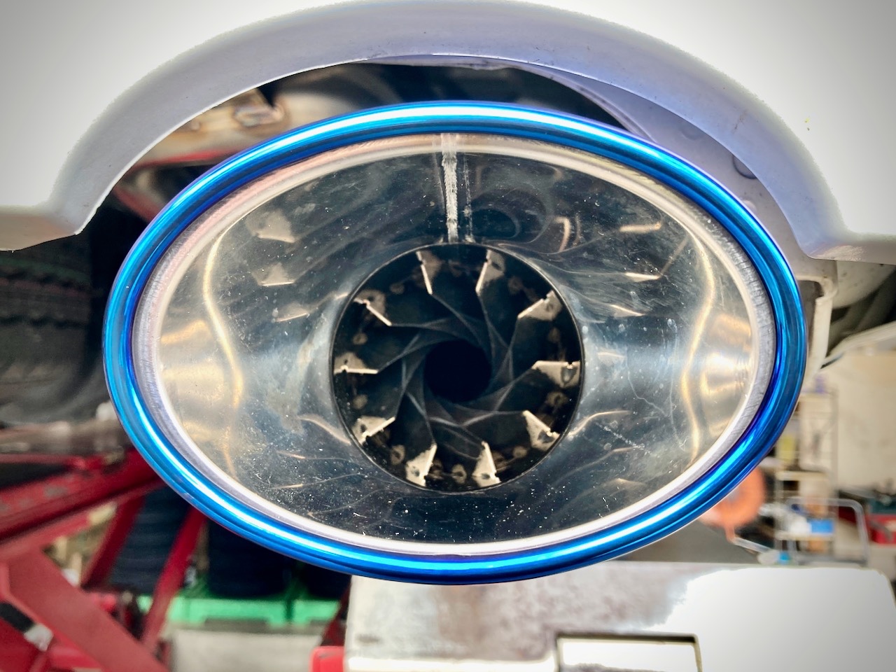 排気効率を整えるスパイラルフィン内蔵。