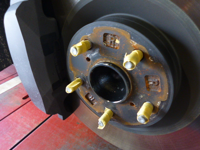 ホイールがブレーキローターに接する直前で止めて、ボルトにひっかけ