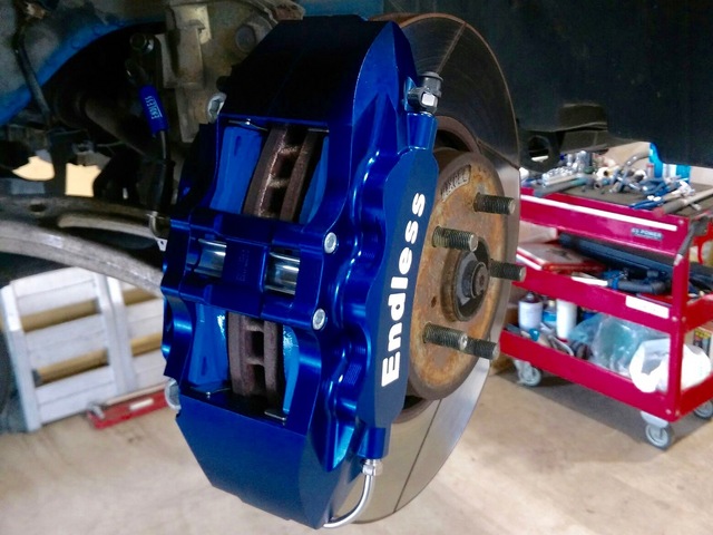 インプレッサGDBにエンドレスのキャリパー取り付けです。