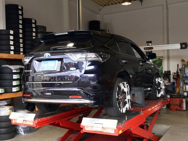 ハリアーハイブリッドに車高調取付けです。