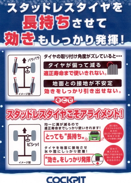 スタッドレスタイヤこそアライメント!