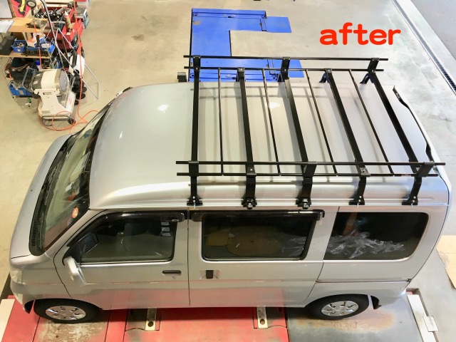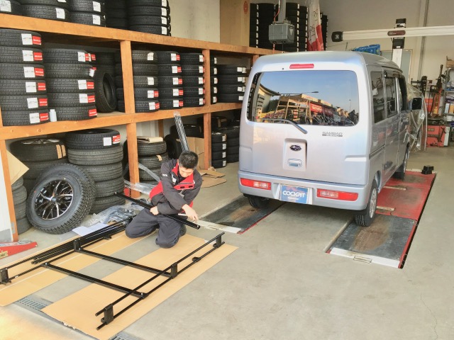 アトレー似のS331B・スバル・サンバーです。ルーフキャリアを付けて納車準備です。