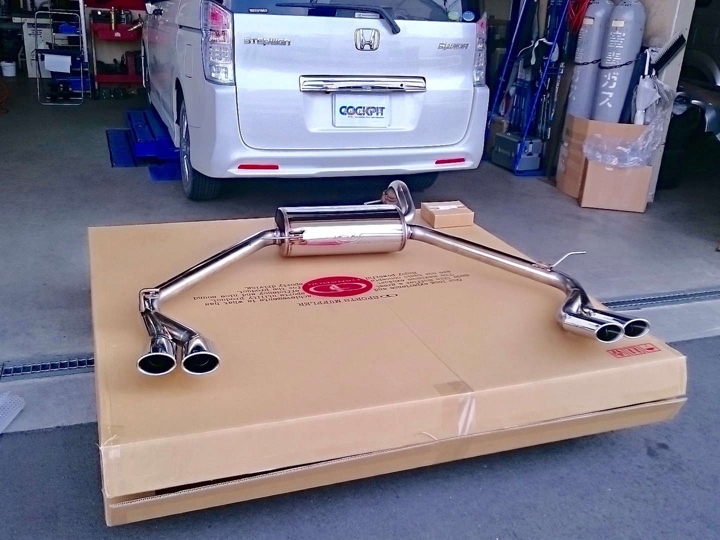 箱を開けるとこんな感じのポリッシュテール左右4本出しのオールステンマフラーです。