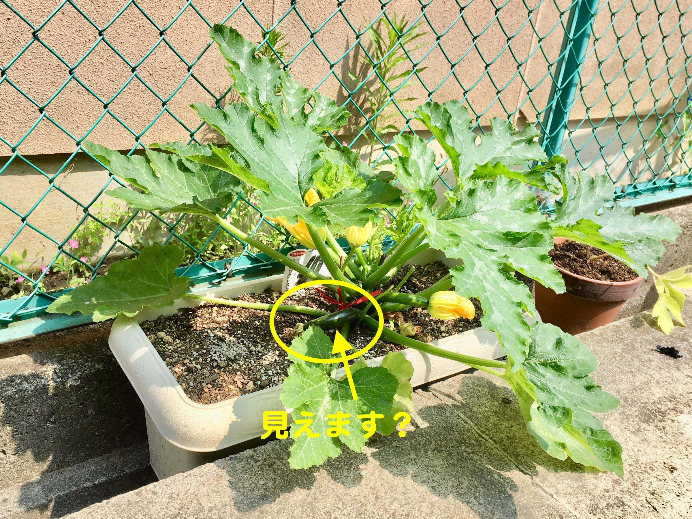 奥さんのズッキーニ、見ないと思ったらいつの間にか陽当たりのイイとこに引っ越してるし。