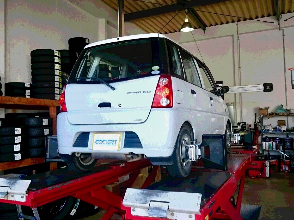 プレオは左フロントタイヤが偏摩耗です。