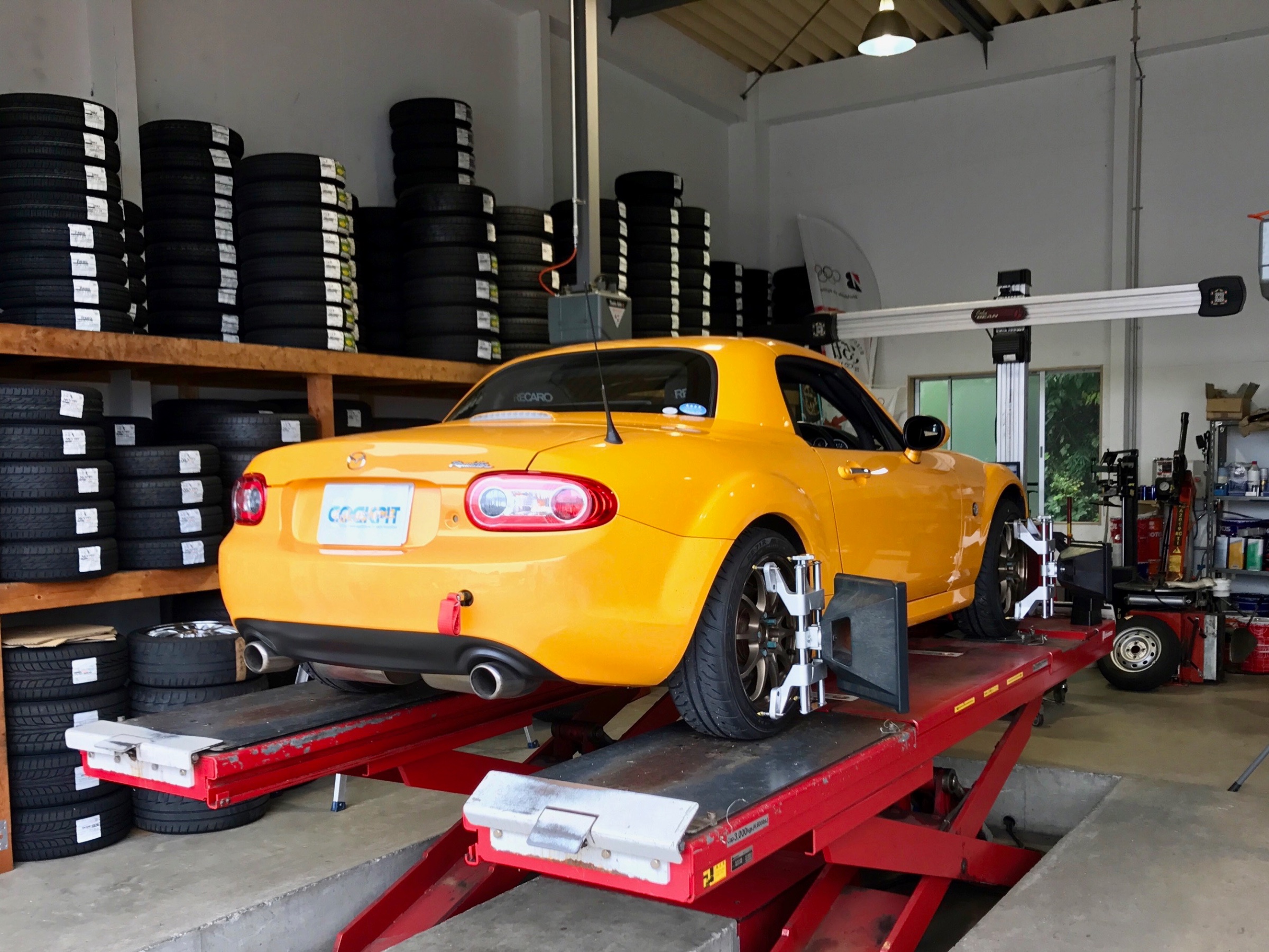 車高調の特性を活かせるようにタイヤの接地角度を直しました。