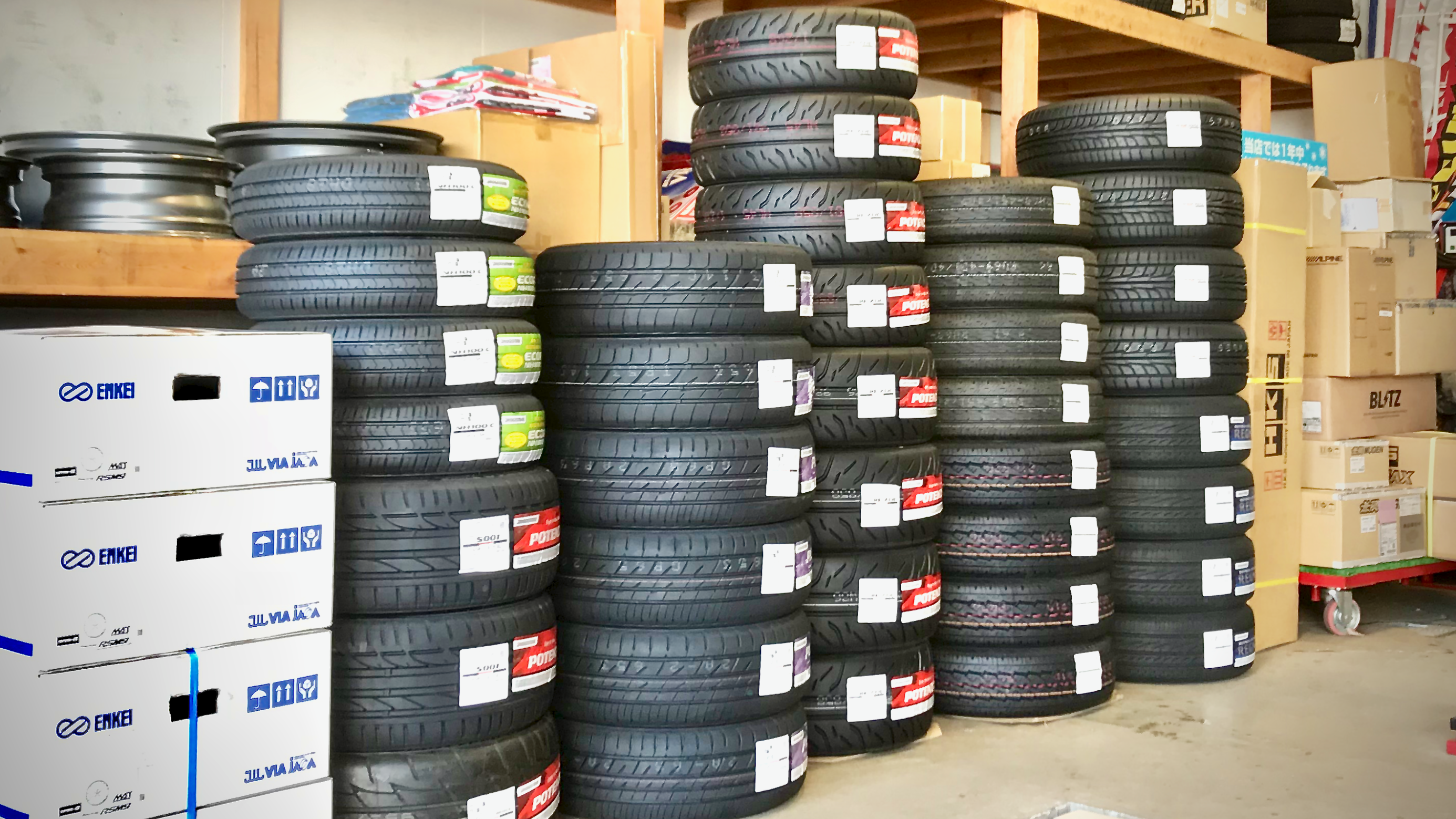 暖かさが増すにつれタイヤ・ホイール・パーツ類が続々入荷中です。