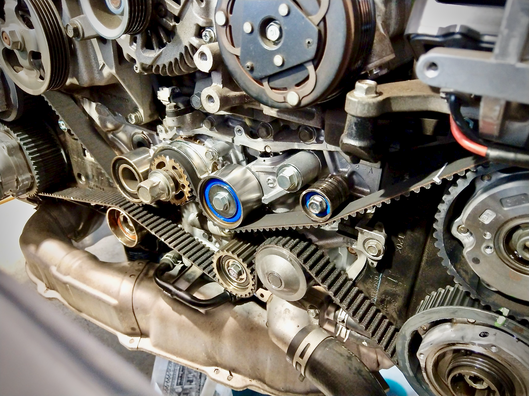 目安100,000kmでしたのでタイベル一式交換です。タイベル長っ!