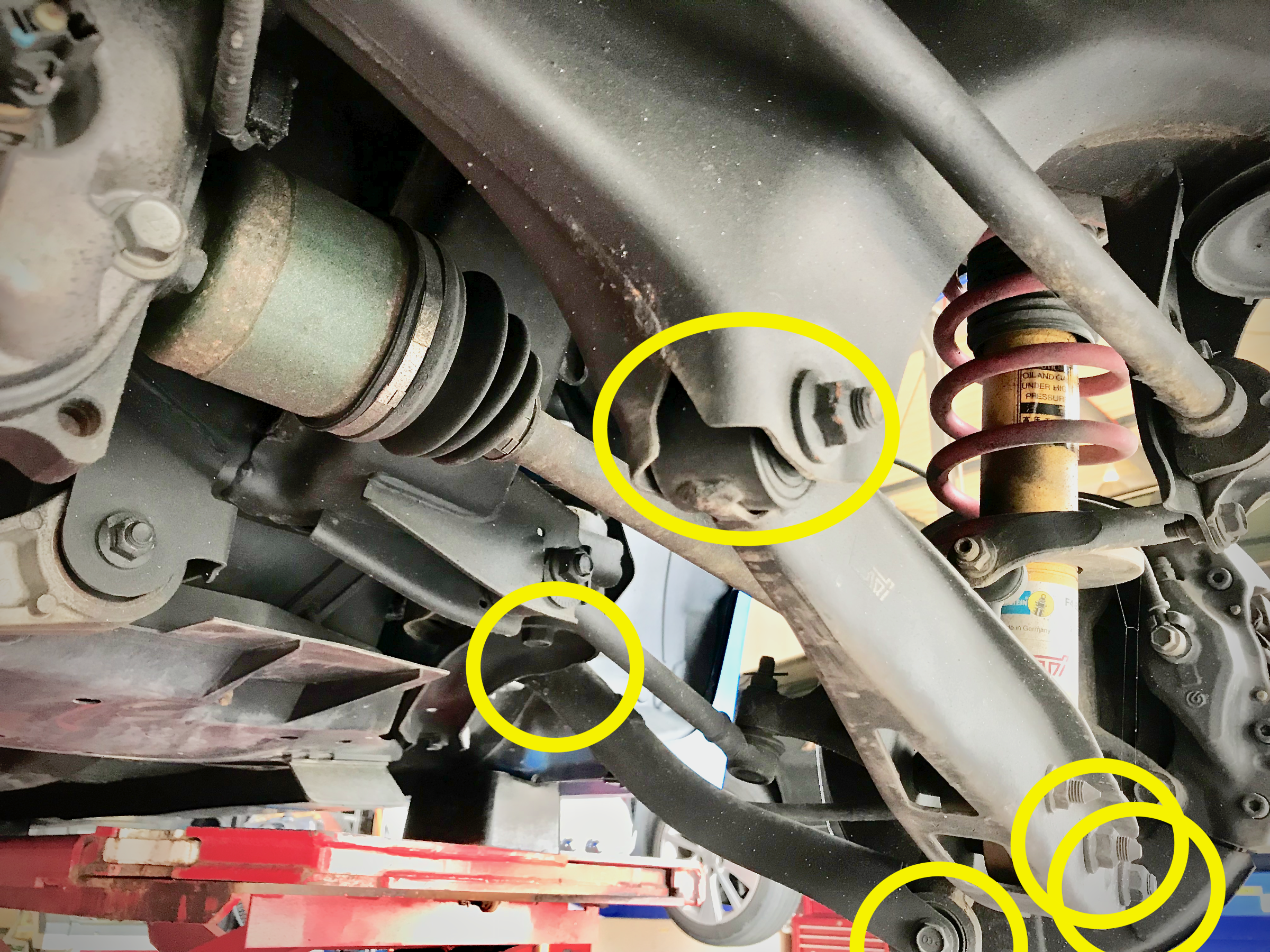 フロント8箇所、リア14箇所のサスペンションアーム連結部を規定トルクで『仮想1G締め直し』